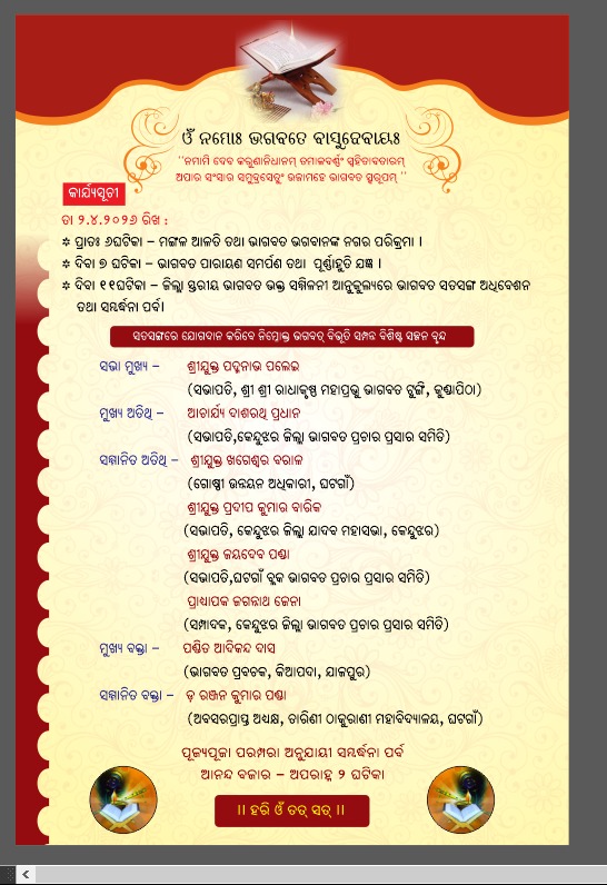 ଅପ୍ରେଲ ଦୁଇ ରେ କେନ୍ଦୁଝର ଜିଲ୍ଲାସ୍ତରୀୟ ଭାଗବତ ଭକ୍ତ ଓ ବନ୍ଧୁ ସମ୍ମେଳନ
