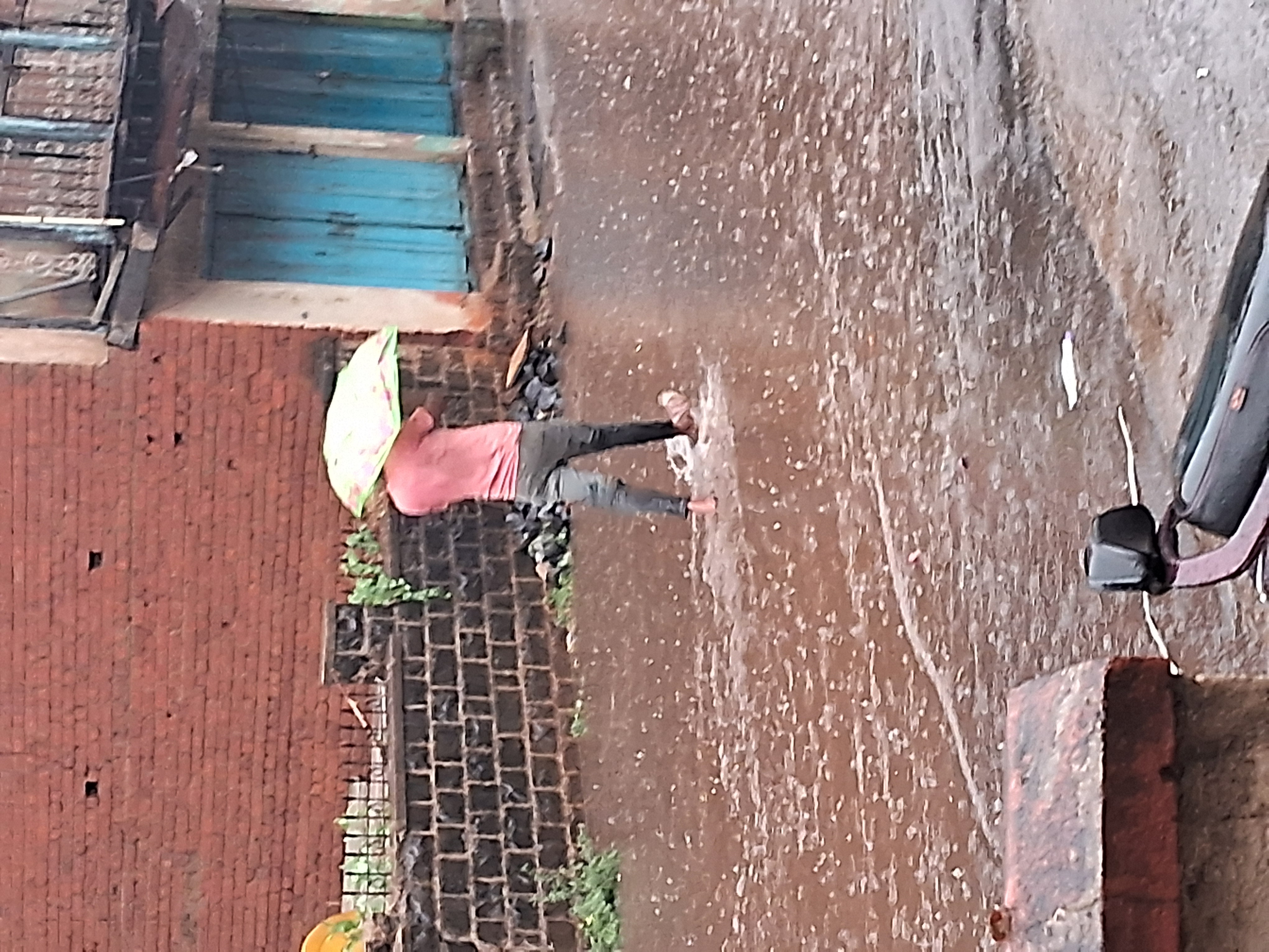 baarish ki wajah se road par paani bhara hai, jisse sadken poori tarah geeli ho gayi hain aur chalne mein dikkat ho rahi hai. Logon ko saavdhaani se chalne ki zarurat hai, khaaskar agar gaadiyan ya paidal chalne wale log ho.