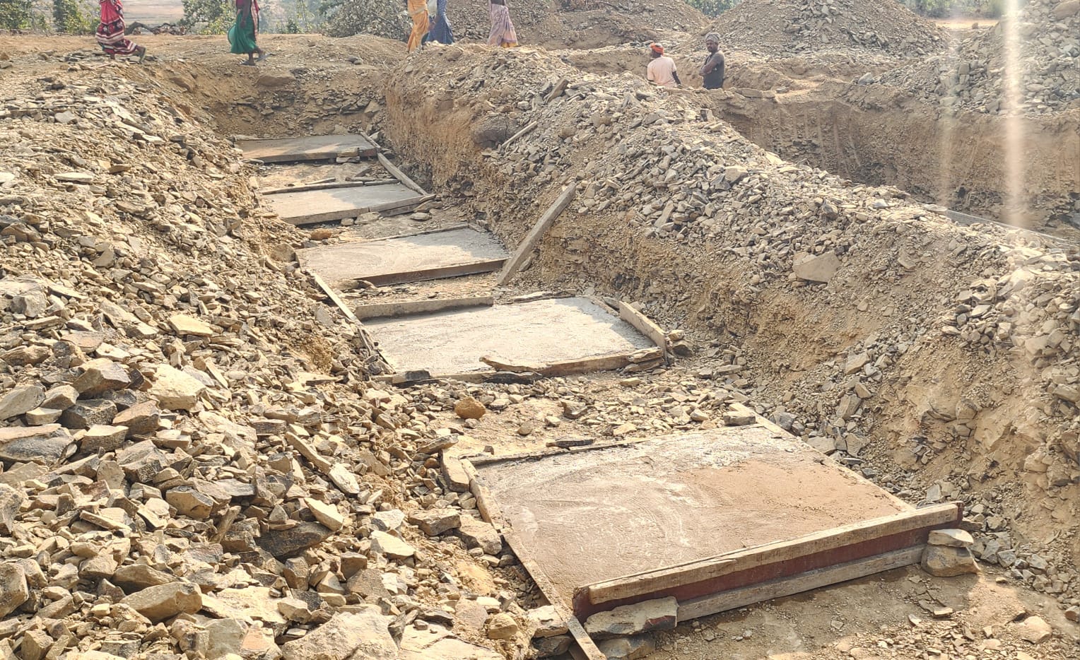 ग्रामीणों का दावा है कि निर्माण में उपयोग की जा रही रेत स्थानीय नदी-नालों से अवैध रूप से निकाली जा रही है।