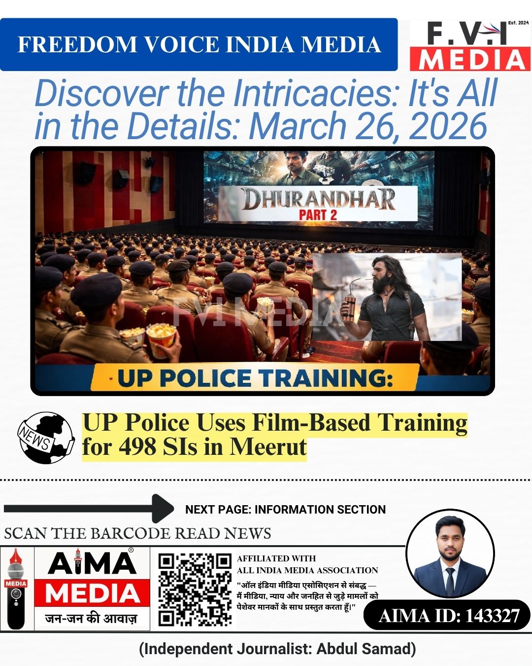 27 March 2026 ko Meerut mein lagbhag 498 Sub-Inspectors (SIs) jo Police Training School (PTS) mein training le rahe hain, unhe ek special session ke tahat film Dhurandhar-2 dikhayi jayegi.