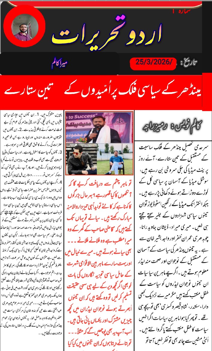 مینڈھر کے سیاسی فَلک پر اُمّیدوں کے تین ستارے درخشاں