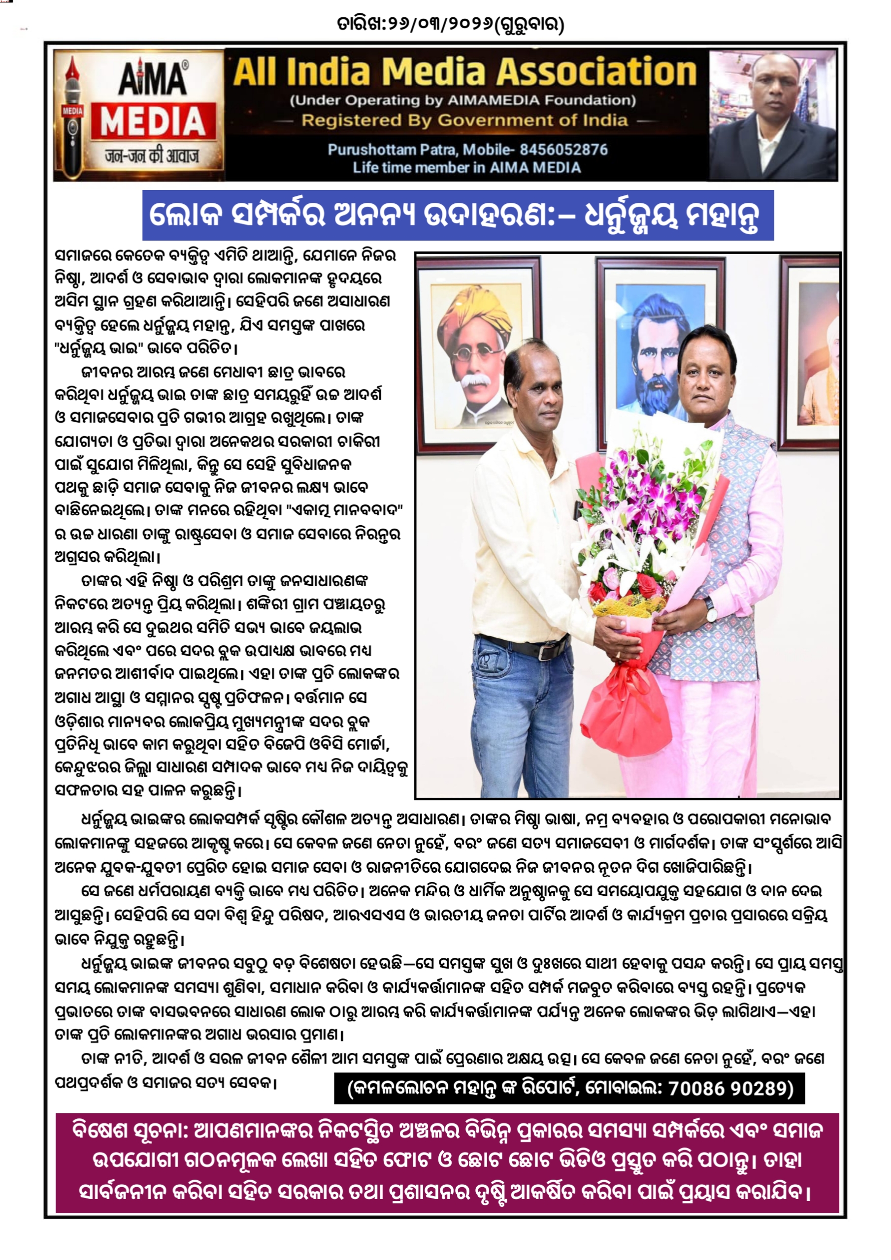 ଲୋକ ସମ୍ପର୍କର ଅନନ୍ୟ ଉଦାହରଣ: – ଧର୍ନୁଜ୍ଜୟ ମହାନ୍ତ।