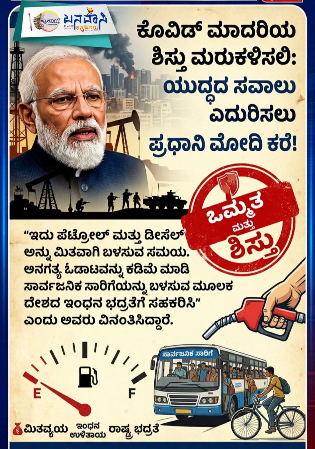 ಕೋವಿಡ್ ಮಾದರಿಯ ಶಿಸ್ತು ಮರುಕಳಿಸಲಿ: ಯುದ್ಧದ ಸವಾಲು ಎದುರಿಸಲು ಪ್ರಧಾನಿ ಮೋದಿ ಕರೆ!
