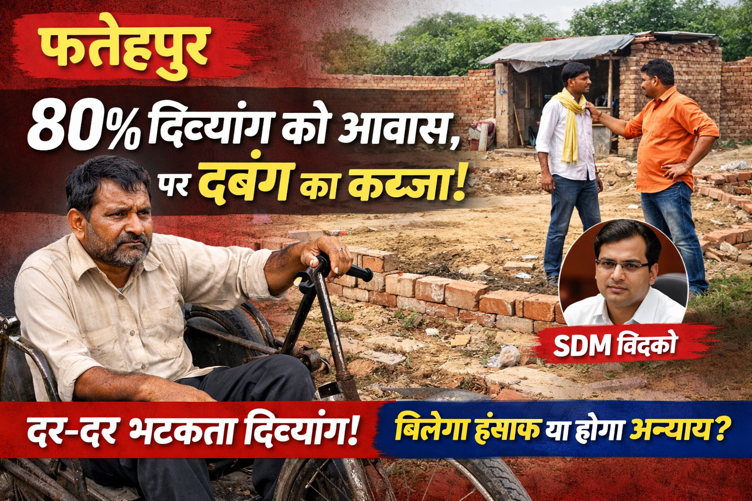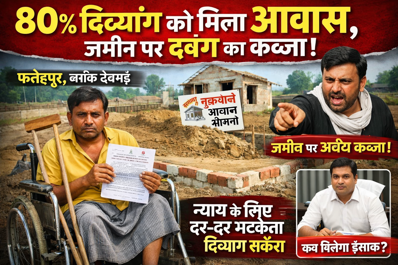 फतेहपुर: 80% दिव्यांग को मिला आवास, लेकिन जमीन पर दबंग का कब्जा—न्याय के लिए भटक रहा पीड़ित