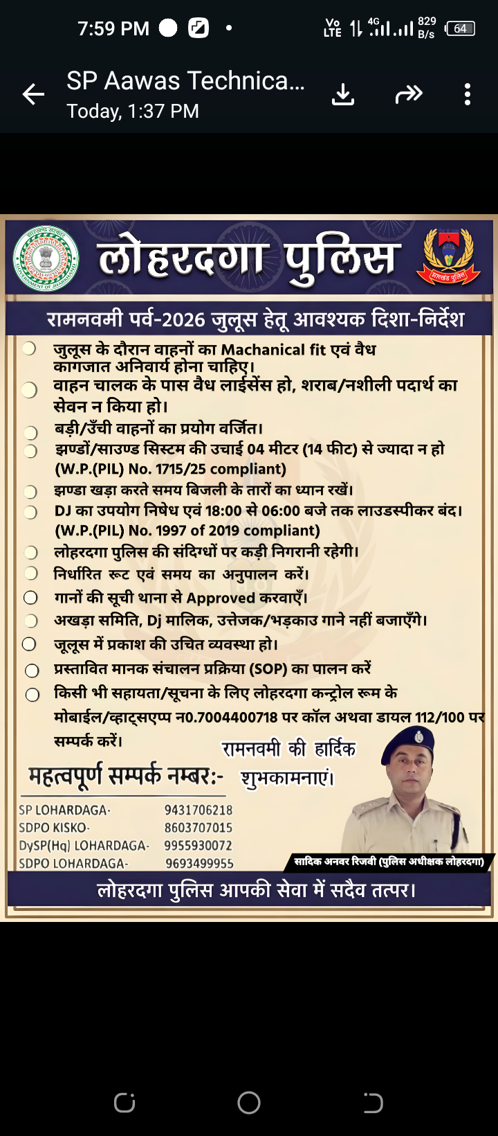 लोहरदगा जिला में रामनवमी पर्व को लेकर 2026 जुलूस हेतु आवश्यक दिशा निर्देश जारी