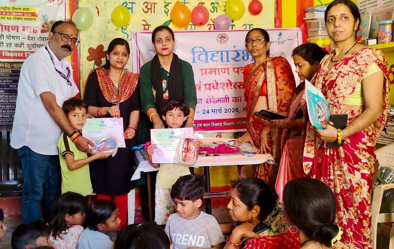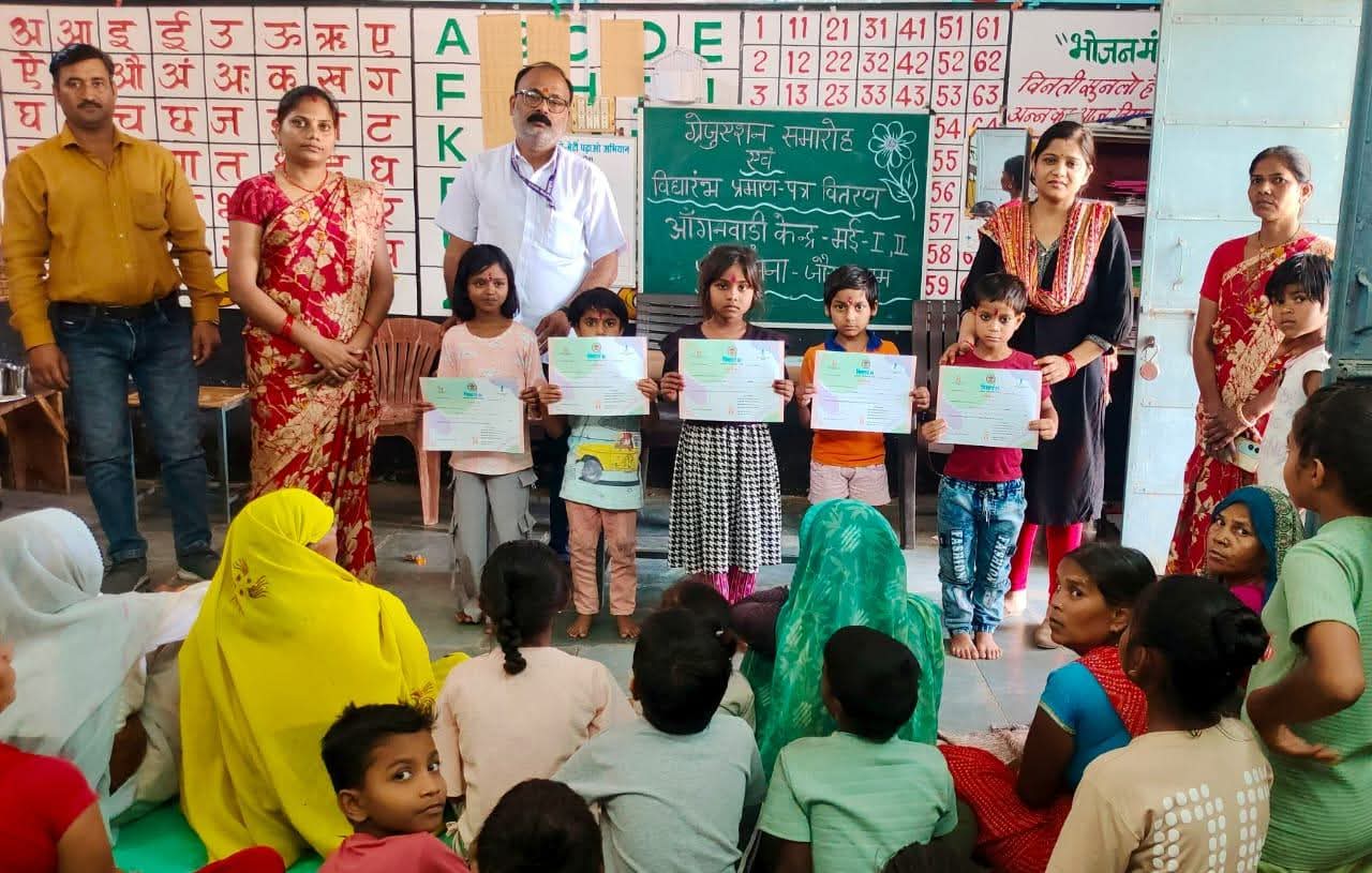 विद्यारंभ कार्यक्रम अंतर्गत आंगनबाड़ी पर बच्चों को वितरित किए प्रमाण पत्र