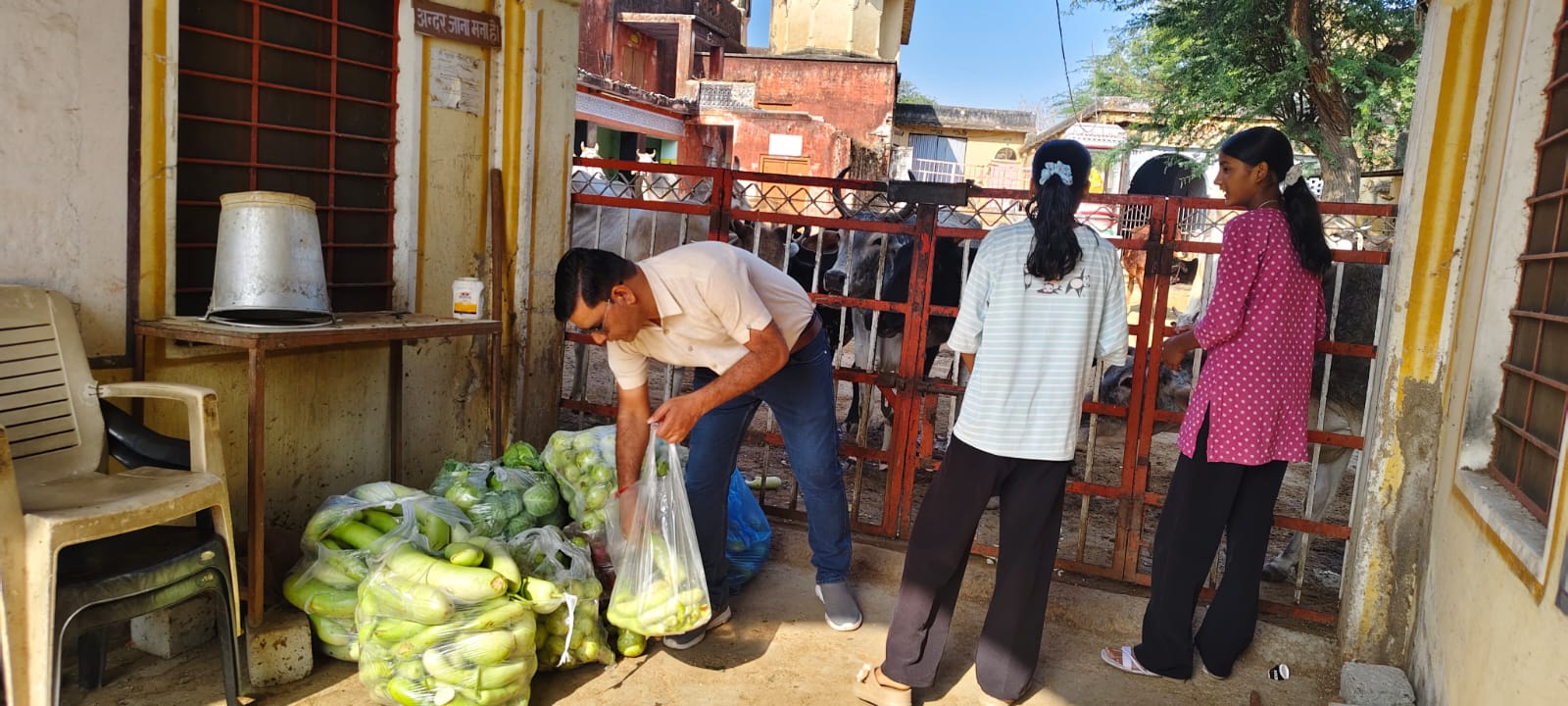 अध्यापक जगदीश प्रसाद मावर की तृतीय पुण्यतिथि पर गायों को हरा चारा खिलाकर किया पुण्य कार्य