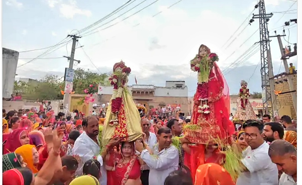गणगौर पर्व के अवसर पर गुरुवार शाम को मूंडवा शहर में पारंपरिक शाही सवारी बड़े उत्साह और धूमधाम के साथ निकाली गई। सवारी में शहर के गणमान्य नागरिकों सहित बड़ी संख्या में श्रद्धालु शामिल हुए। महिलाओं और बालिकाओं ने पारंपरिक वेशभूषा में भाग लेकर आयोजन को सांस्कृतिक रंग प्रदान किया। शाही सवारी का शुभारंभचारभुजा मंदिर से पूजा-अर्चना के बाद हुआ। इसके बाद ईशर-गौर की सुसज्जित प्रतिमाओं को मुख्य बाजार मार्ग से होते हुए पठार चौक तक ले जाया गया। मार्ग में श्रद्धालुओं ने पुष्प वर्षा की।