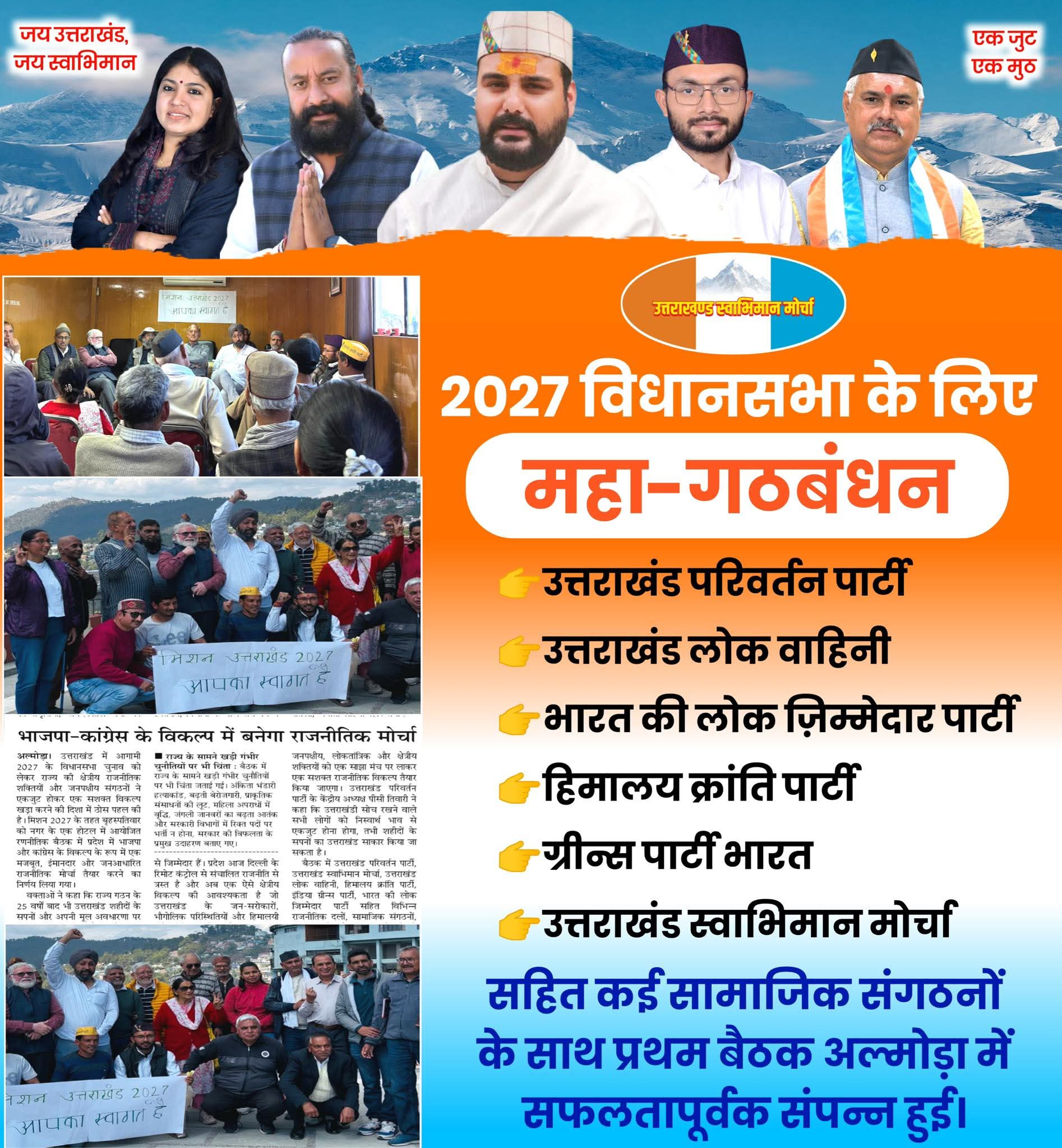 अल्मोड़ा में उत्तराखंड स्वाभिमान मोर्चा के साथ उत्तराखंड परिवर्तन पार्टी,उत्तराखंड लोक वाहिनी, भारत की लोक ज़िम्मेदार पार्टी, हिमालय क्रांति पार्टी, एवं ग्रीन्स पार्टी भारत कुल 6 पार्टियों के साथ गठबंधन को लेकर सकारात्मक विमर्श हुआ।