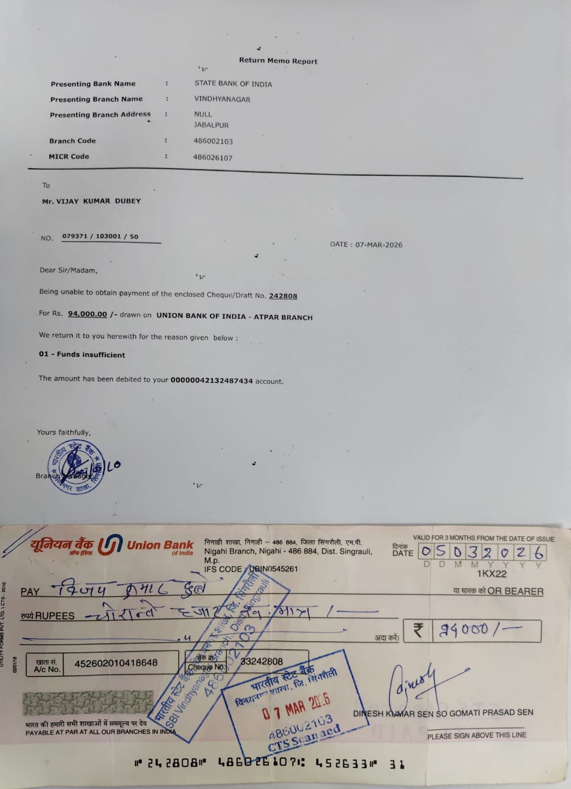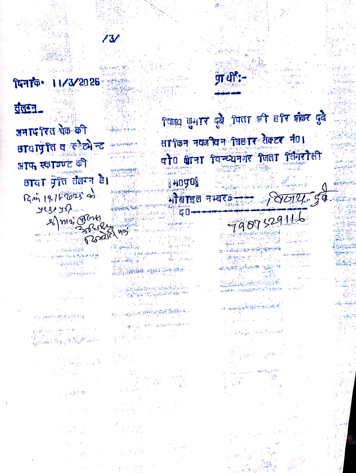 सिंगरौली में नौकरी के नाम पर ₹94,000 ठगी, चेक बाउंस; पीड़ित को आर्थिक नुकसान व मानसिक प्रताड़ना, कार्रवाई की मांग