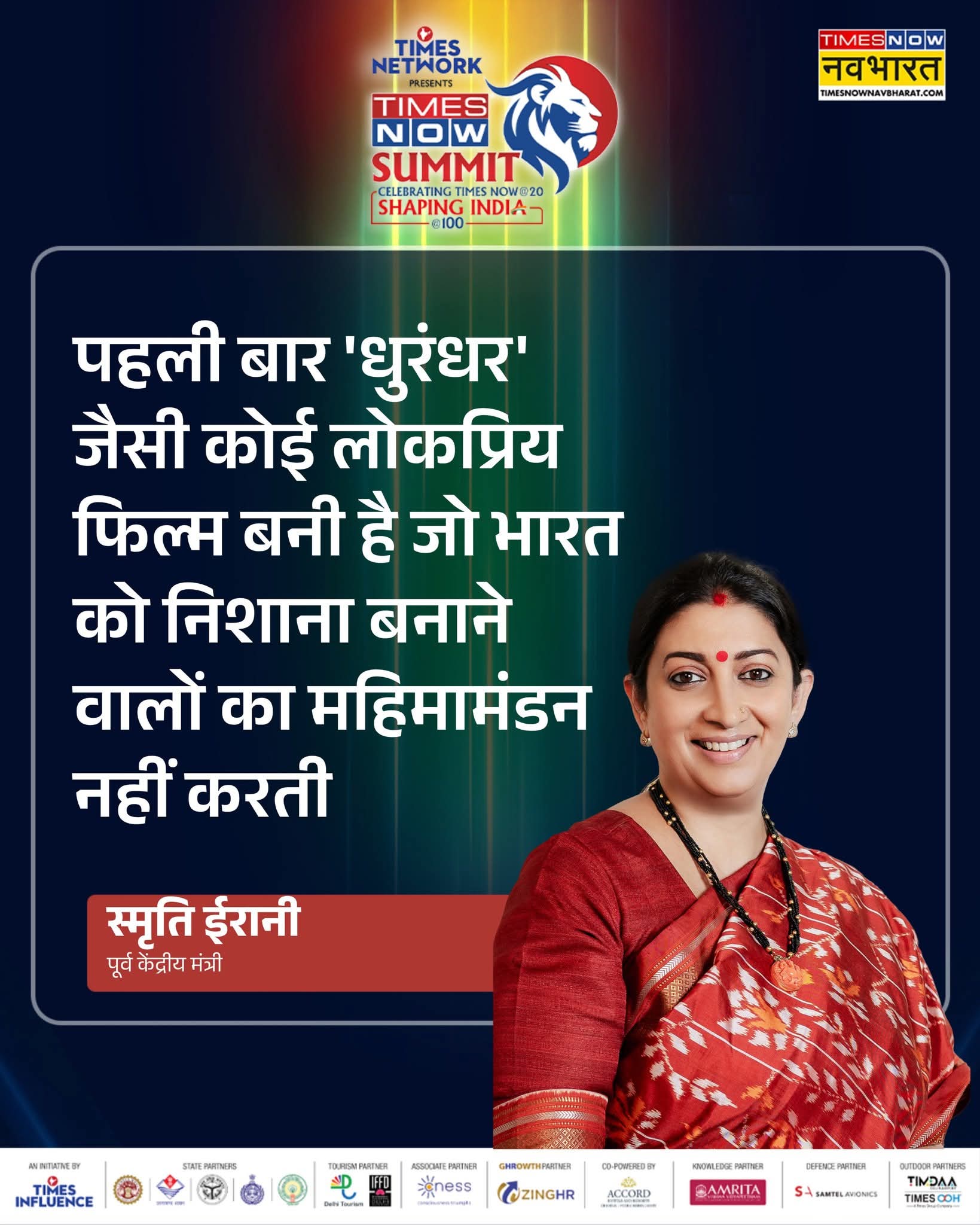 Smriti Zubin Irani #TNSummit26 #TimesNowSummit Jansampark Madhya Pradesh Delhi Tourism ZingHRAccord Hotels and ResortsAmrita Vishwa Vidyapeetham Samtel Avionics CNESSInc Government of UP