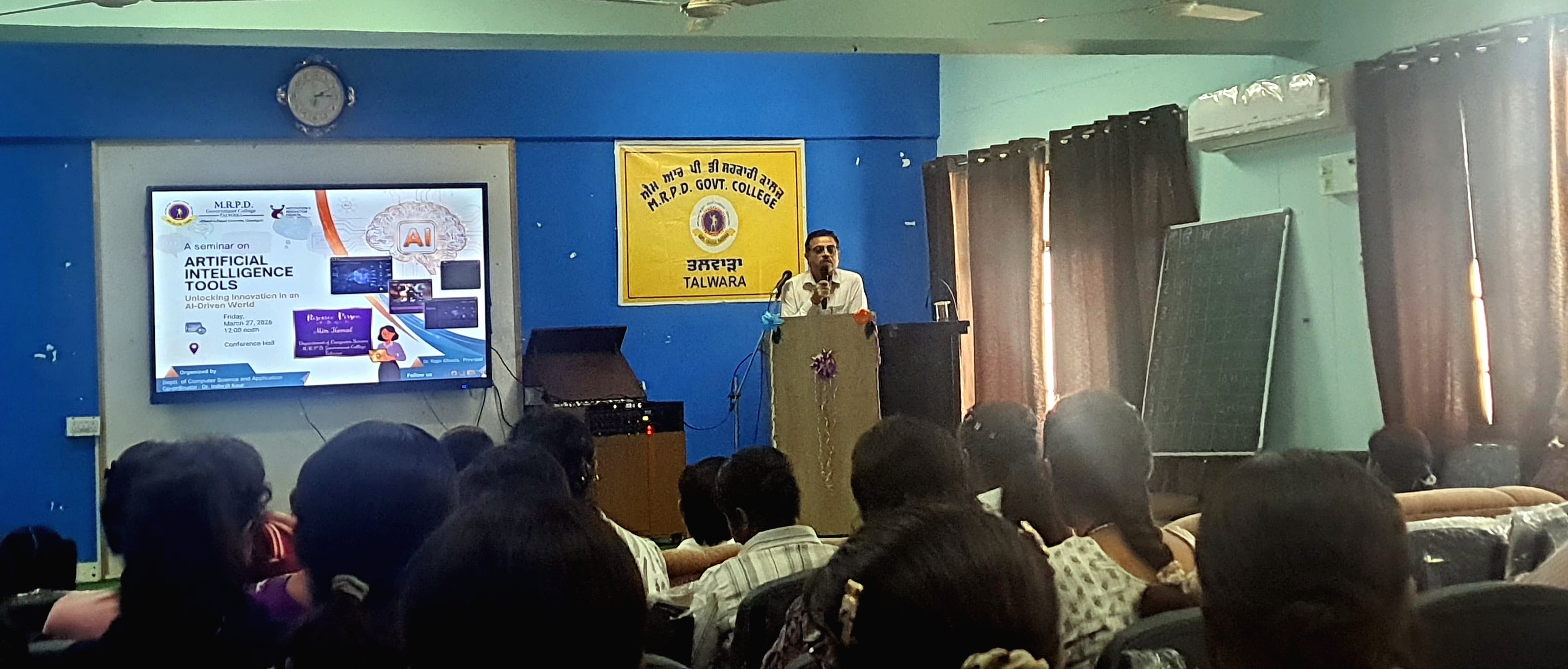 तलवाड़ा-होशियारपुर, 28 मार्च ( अर्श ) : एम.आर.पी.डी राजकीय महाविद्यालय, तलवाड़ा में प्रिंसिपल डॉ. राजीव खोसला के नेतृत्व तथा कंप्यूटर विभाग की विभागाध्यक्ष प्रो. इंद्रजीत कौर की देख-रेख में “आर्टिफिशियल इंटेलिजेंस टूल्स : ए.आई-ड्राइवन दुनिया में इनोवेशन अनलॉक करना” विषय पर एक प्रभावशाली सेमिनार का आयोजन किया गया।