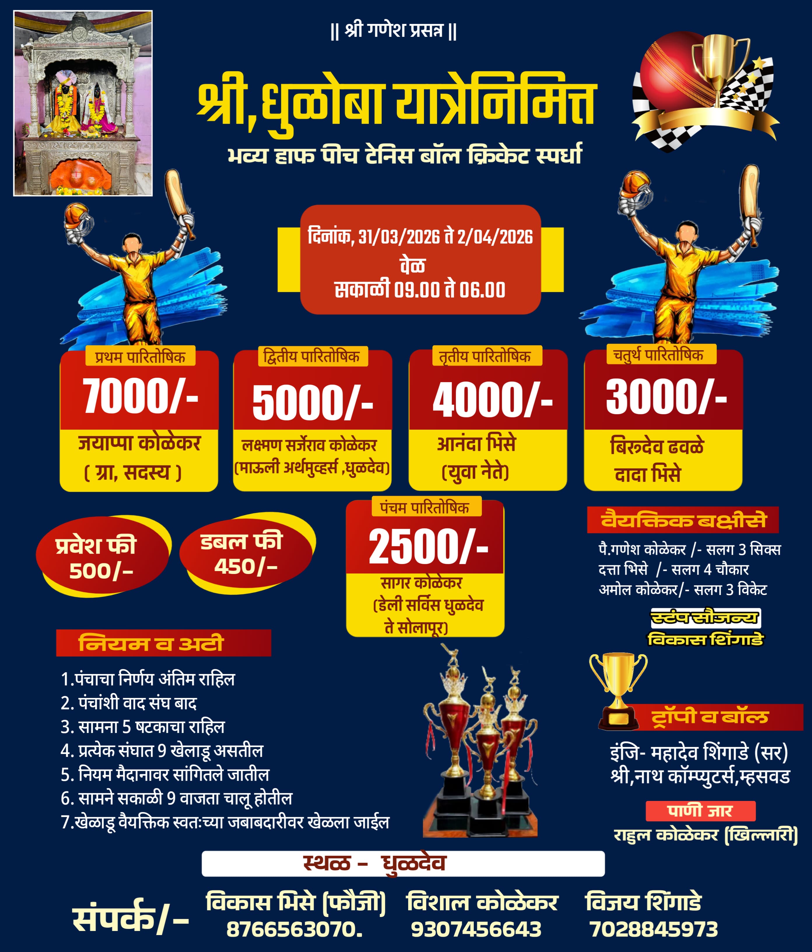 धुळदेवमध्ये क्रिकेटचा जल्लोष! श्री धुळोबा यात्रेनिमित्त भव्य स्पर्धेची रंगत