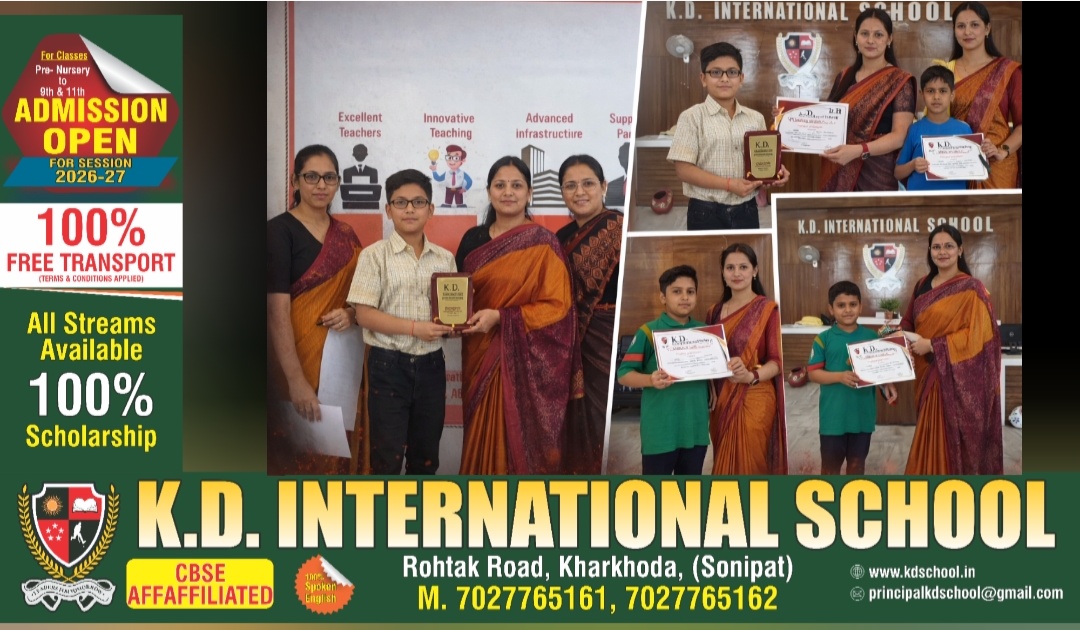 KD इंटरनेशनल स्कूल खरखौदा में शैक्षणिक सत्र 2025–26 का वार्षिक परिणाम दिवस और पीपी3 ग्रेजुएशन सेरेमनी का आयोजन अत्यंत भव्यता और हर्षोल्लास के साथ किया गया।