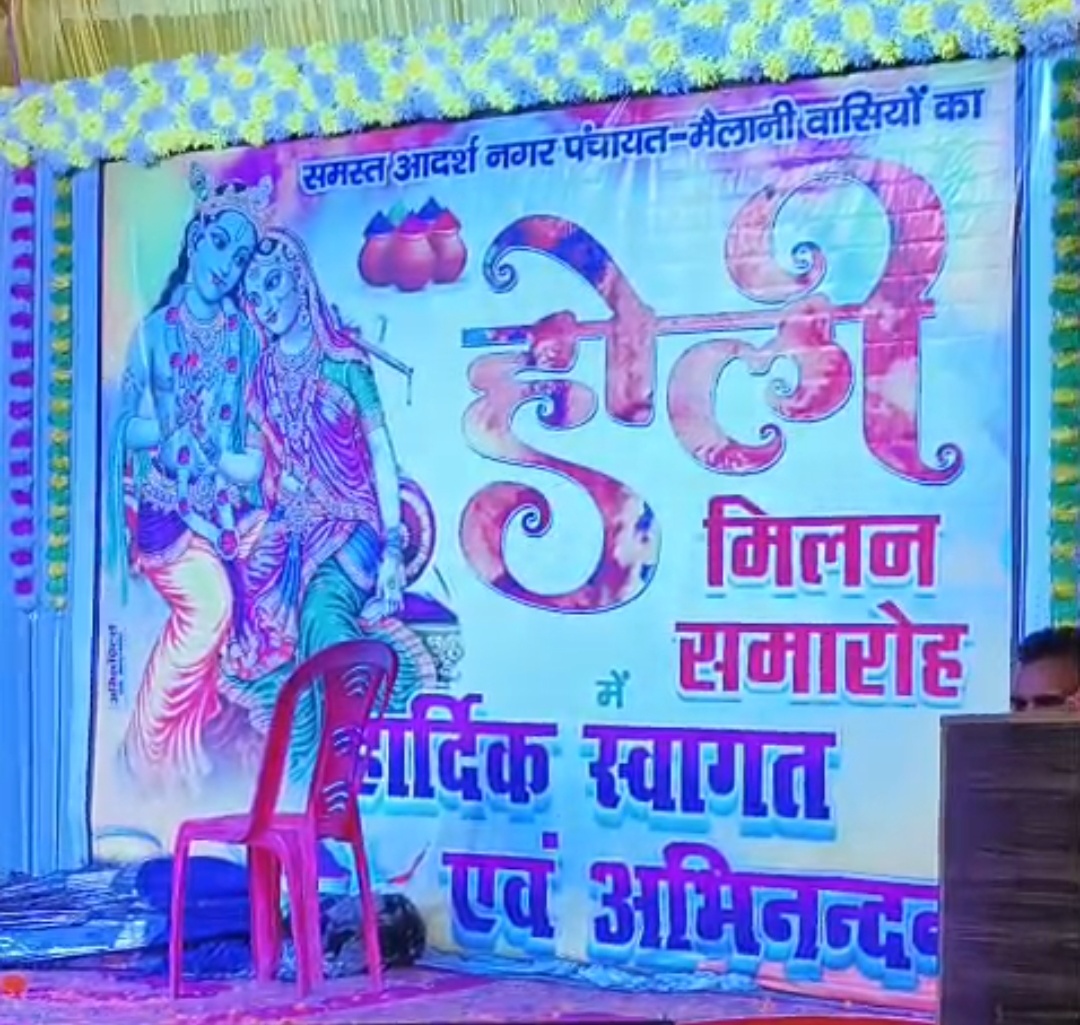 मैलानी (जनपद लखीमपुर खीरी), 28 मार्च2026 होली के रंगों और भक्ति के मिलन का सुंदर समारोह आज मैलानी नगर पंचायत क्षेत्र में आयोजित किया गया। स्थानीय स्तर पर आयोजित इस होली मिलन समारोह में बड़ी संख्या में क्षेत्रवासी, महिलाएं, बच्चे और स्थानीय नेता शामिल हुए। कार्यक्रम में फूलों की होली, सांस्कृतिक कार्यक्रम और आपसी भाईचारे का खूबसूरत माहौल देखने को मिला।