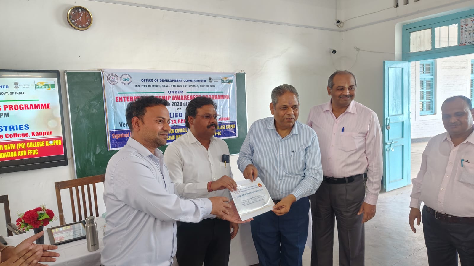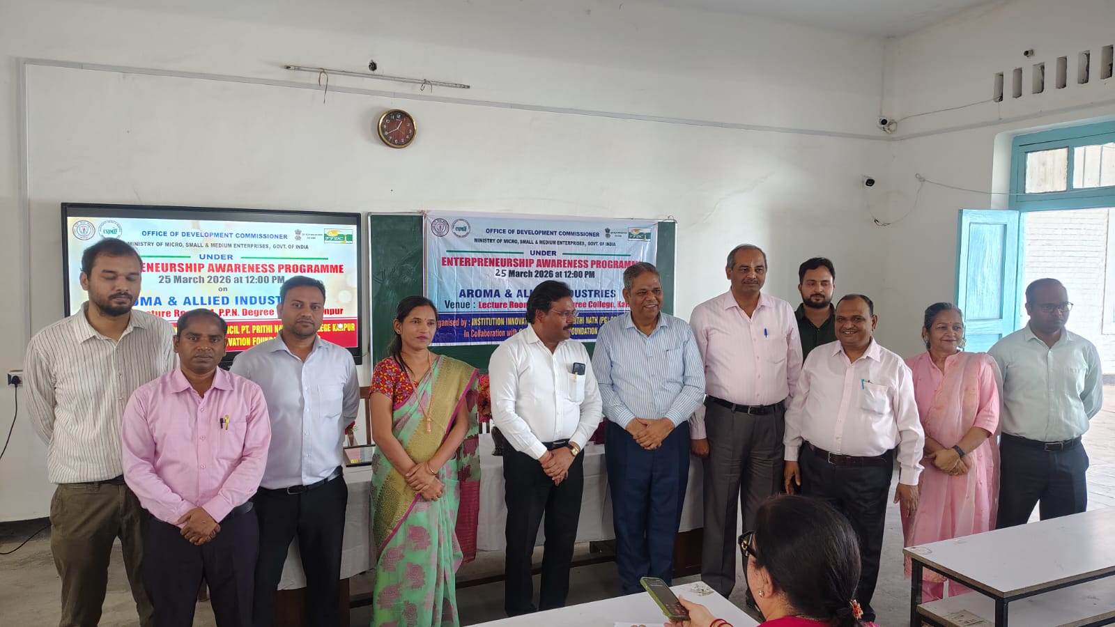 कानपुर। पं. पृथी नाथ (पी.जी.) कॉलेज, कानपुर के संस्थान नवाचार परिषद आईआईसी द्वारा आईक्यूएसी के तत्वावधान में “अरोमा एवं संबद्ध उद्योग” विषय पर आयोजित उद्यमिता जागरूकता कार्यक्रम (ईएपी) सफलतापूर्वक सम्पन्न हुआ। यह कार्यक्रम भारत सरकार के सूक्ष्म, लघु एवं मध्यम उद्यम मंत्रालय (एमएसएमई), सीएसजेएमयू इनोवेशन फाउंडेशन तथा फ्रेगरेंस एवं फ्लेवर डेवलपमेंट सेंटर कानपुर के सहयोग से आयोजित किया गया। कार्यक्रम में मुख्य वक्ता के रूप में डॉ. अनिल कुमार त्रिपाठी, इन्क्यूबेशन मैनेजर, सीएसजेएमयू कानपुर तथा डॉ. भक्ति विजय शुक्ला, सहायक निदेशक, एफएफडीसी एक्सटेंशन यूनिट, कानपुर उपस्थित रहे। उन्होंने अरोमा एवं संबद्ध उद्योगों में उपलब्ध रोजगार एवं उद्यमिता के अवसरों पर विस्तृत प्रकाश डाला तथा विद्यार्थियों को स्टार्टअप स्थापित करने के लिए प्रेरित किया। महाविद्यालय के प्राचार्य प्रो. अनूप कुमार सिंह ने कार्यक्रम की सराहना करते हुए कहा कि इस प्रकार के आयोजन विद्यार्थियों को आत्मनिर्भर बनने एवं नवाचार की दिशा में आगे बढ़ने के लिए प्रेरित करते हैं। इस अवसर पर आयोजन समिति की संयोजिका डॉ. कीर्ति चौहान तथा सदस्य डॉ. सत्यप्रकाश श्रीवास्तव, डॉ. ललित कुमार मौर्य, डॉ. यशवीर गौतम एवं ऋषभ गुप्ता भी उपस्थित रहे। विशेष रूप से अरोमा उद्योग में आवश्यक कौशल, प्रशिक्षण, वित्तीय सहायता तथा सरकारी योजनाओं की जानकारी साझा की गई, जिससे विद्यार्थियों को इस क्षेत्र में आगे बढ़ने के लिए मार्गदर्शन प्राप्त हुआ।