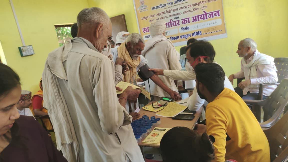 मध्यप्रदेश जन अभियान परिषद सबलगढ़ विकासखण्ड समन्वयक श्रीमती वंदना सगर के मार्गदर्शन में नवांकुर संस्था अन्नपूर्णा देवी शिक्षा समाज एवं सांस्कृतिक समिति द्वारा स्वास्थ्य विभाग के सहयोग से विकासखण्ड सबलगढ़ की ग्राम पंचायत बत्तोखर में स्वास्थ्य शिविर का आयोजन किया। शिविर में प्रभारी बीएमओ श्री ब्रजेश गोयल, बीपीएम श्री अखलेश शर्मा, मेडिकल ऑफिसर डॉ. सुनील धाकड़, सीएचओ श्रीमती अंजली शाक्य द्वारा स्वास्थ्य परीक्षण कर इलाज किया एवं दवाइयां वितरित की।