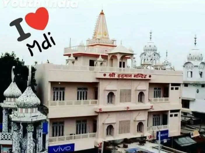 #मोहम्मदी_खीरी की गंगा जमुनी तहजीब का अनोखा संगम मंदिर के सामने दिखाई दे रही मस्जिद की मीनारें और मंदिर के पीछे गुरुद्वारा की मीनारें और बीच में हनुमान मंदिर चित्र मे साफ दिखाई दे रहा,जिसमे सच्चाई ईश्वर एक है मानने के तरीके अलग-अलग यही है हमारी मोहम्मदी की खूबसूरती (I❤️Mohammadi)