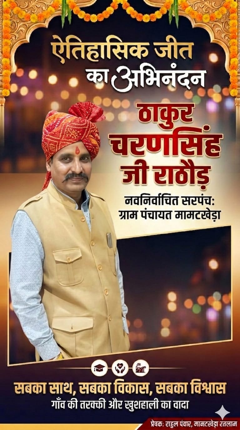 यह महज़ एक शेर नहीं, बल्कि ठाकुर चरणसिंह जी राठौड़ के जीवन का सार है। आज जब हम मामटखेड़ा में विकास की बयार देखते हैं, एक सजग नेतृत्व को देखते हैं, तो उसके पीछे की तपस्या और संघर्ष की कहानी भी उतनी ही प्रेरणादायक है। एक मध्यमवर्गीय आँगन से निकलकर गाँव के सर्वोच्च पद (सरपंच) तक पहुँचना और जन-जन का लाड़ला बनना, ठाकुर साहब के फौलादी इरादों और उनकी निश्छल सेवाभावना का प्रमाण है।