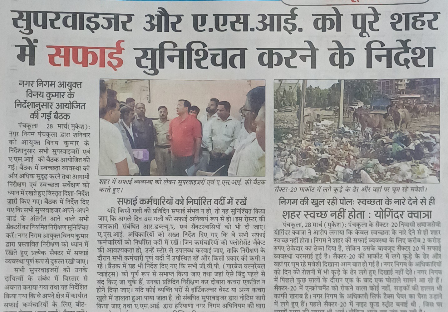 सुपरवाइजर और ए.एस.आई. को पुरे शहर में सफाई सुनिशिचत करने के निर्देश शहर में गैस कनेक्शन बंद होने से लोग परेशान लेडी गवर्नर अनीता कटारिया ने ग्रिड