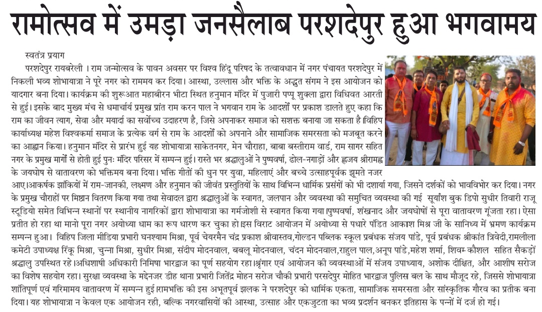 राम नवमी पर परसदेपुर में उमड़ा आस्था का जनसैलाब, भव्य शोभायात्रा ने खींचा जनसमूह परसदेपुर (उत्तर प्रदेश) में राम नवमी पर श्रद्धालुओं की भारी भीड़,