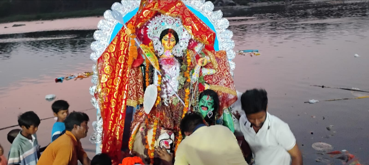 शोभायात्रा कदमा क्षेत्र के विभिन्न मार्गों से होती हुई खरकई नदी तट पहुंची, जहां विधि-विधान के साथ मां दुर्गा की प्रतिमा का शांतिपूर्ण विसर्जन किया गया। इस दौरान सुरक्षा एवं व्यवस्था का भी विशेष ध्यान रखा गया, जिससे कार्यक्रम सफलतापूर्वक संपन्न हुआ।