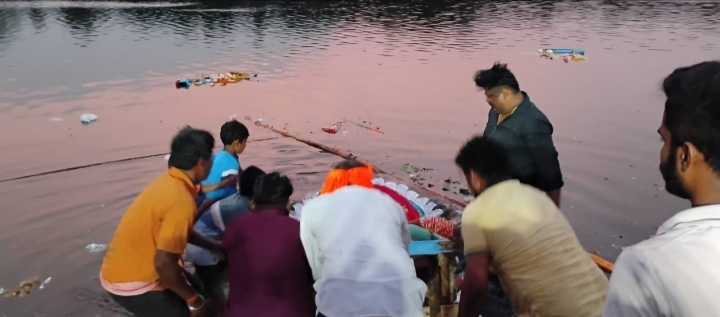 ढोल-नगाड़ों के बीच खरकई नदी में शांतिपूर्ण विदाई