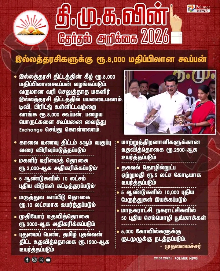 #JUSTIN || இல்லத்தரசிகளுக்கு ரூ.8,000 மதிப்பிலான கூப்பன் | #DMK | #CMMKStalin | #DmkManifesto2026 | #News