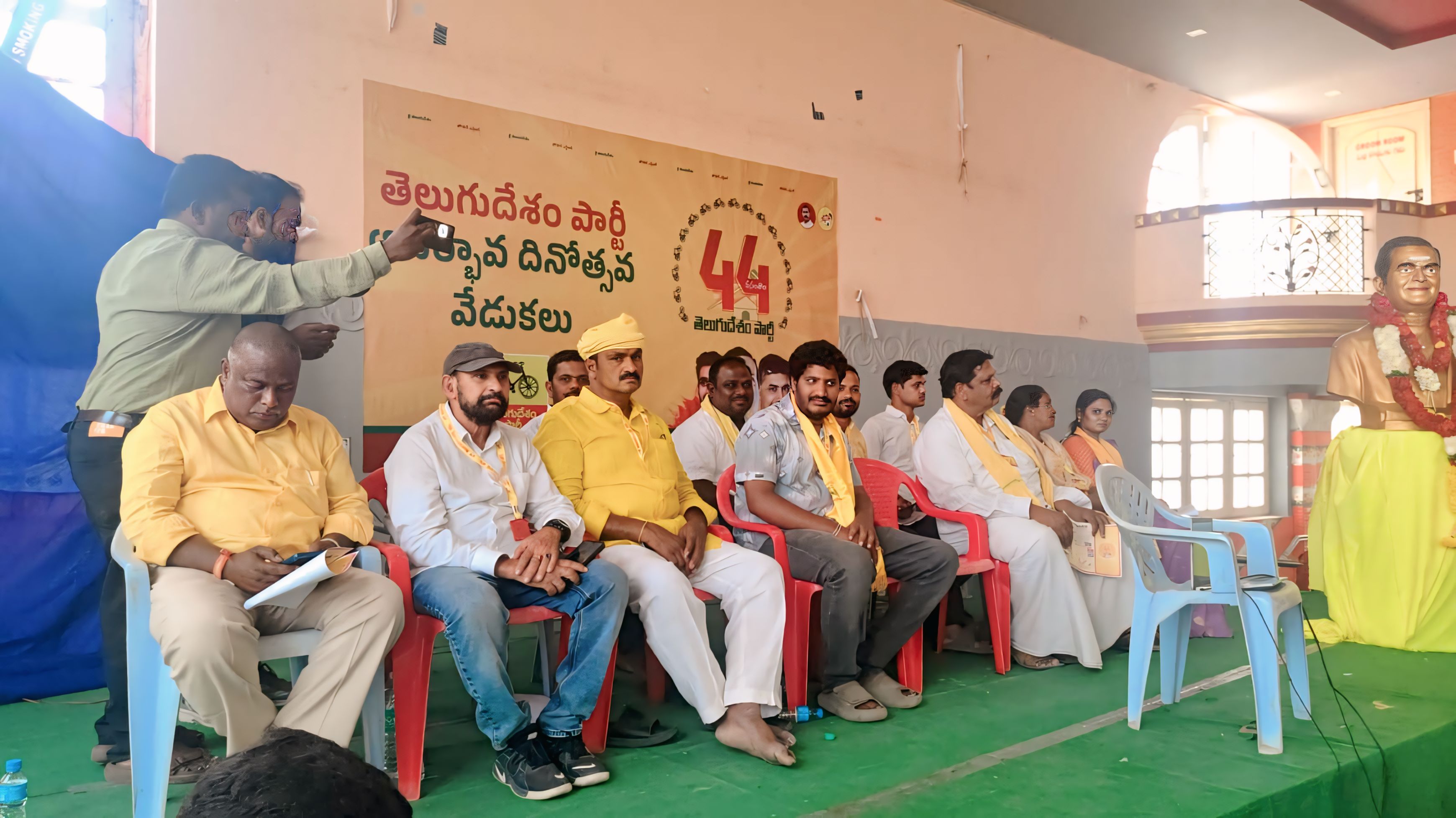The 44th foundation day celebrations of the Telugu Desam Party held at the Madanapalle Paradise Function Hall, the district headquarters of Annamayya district, were grandly organized under the leadership of MLA M. Shahjahan Basha. On this occasion, as per the party's instructions to honor talented people in various departments, MLA M Shahjahan Basha grandly honored them. On this occasion, Sheikh Karimullah, former councilor, expressed his gratitude and thanks to the party and MLA M Shahjahan Basha, party general secretary Lokesh Babu and Chief Minister Nara Chandrababu Naidu for announcing his name for securing first place in Madanapalle constituency and 94th place at the state level in My TDP App.