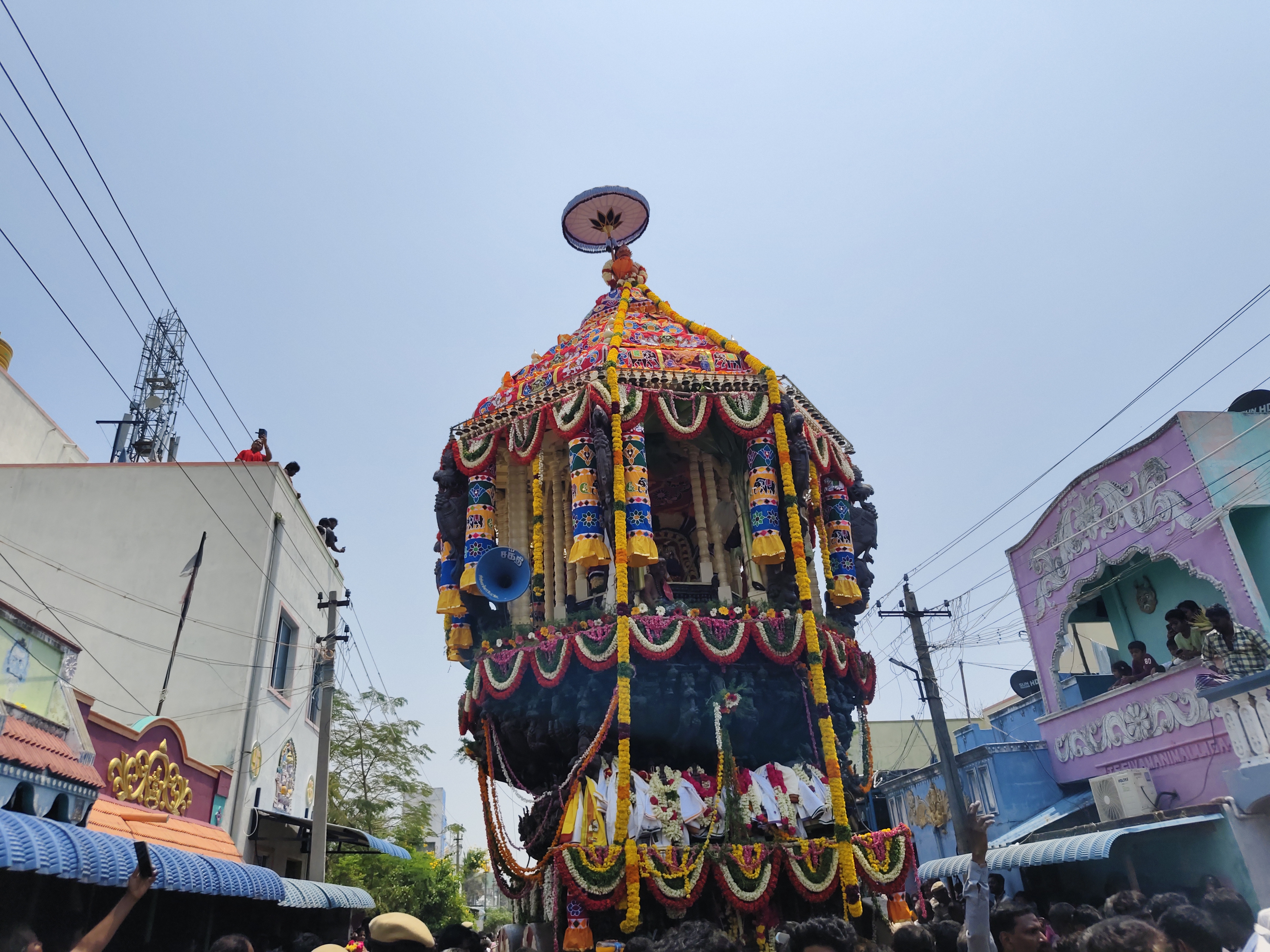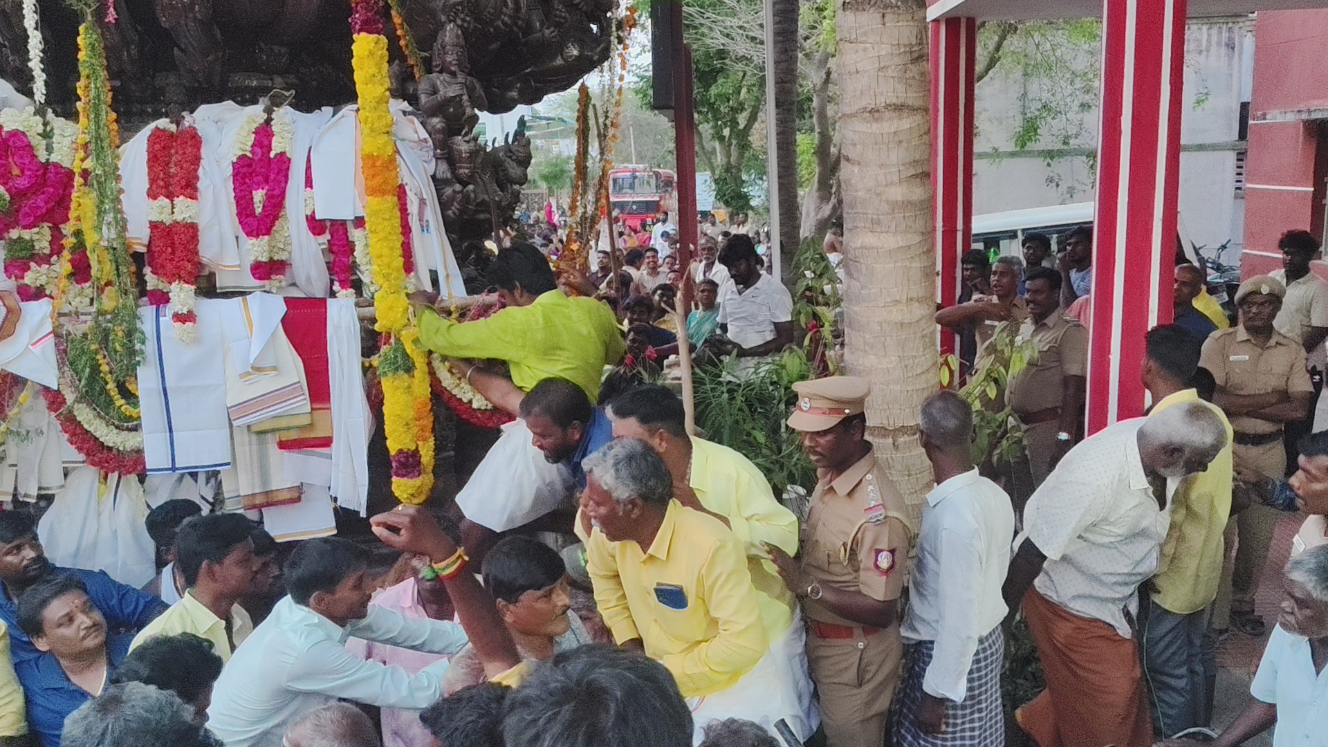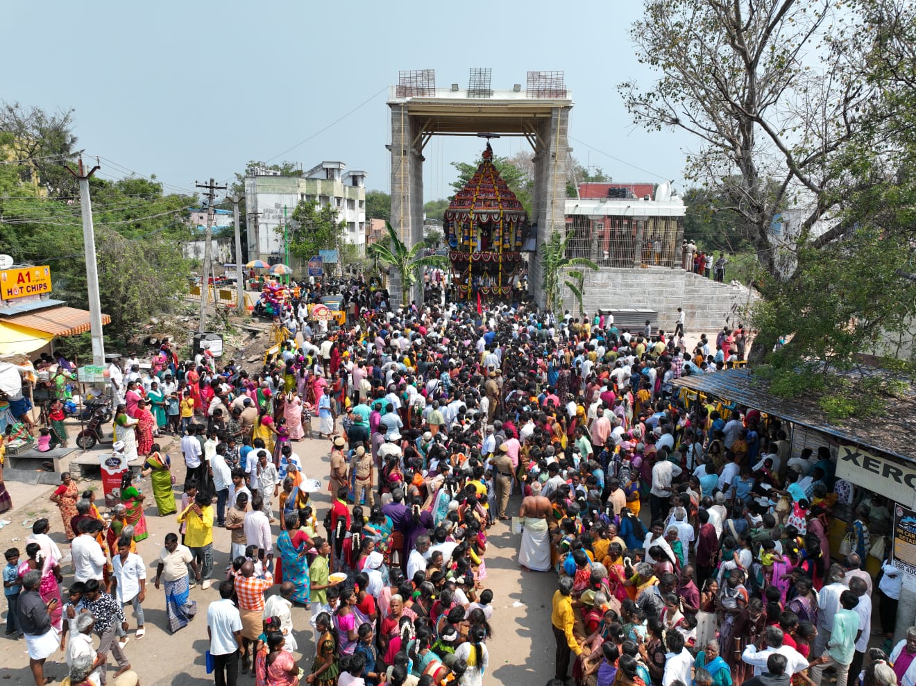 திருவள்ளூர் மாவட்டம் திருத்தணி அருள்மிகு சுப்ரமணிய சுவாமி திருக்கோவிலின் உப கோவில் வடாரண்யேஸ்வர சுவாமி ஆலயம் திருவாலங்காட்டில் அமைந்துள்ளது கோவிலில் ஆண்டுதோறும் நடைபெறும் பங்குனி உத்திர பெருவிழா சுமார் பத்து நாட்களில் கோலாகலமாக கொண்டாடப்பட்டு வரும் வகையில் கொடி 22/03/2026 அன்று ஏற்றப்பற்று விழா தொடங்கப்பட்டது இதில் வன்னியர் சமுதாயத்தின் சார்பாக 28/03/2026 அன்று கமலத் தேரோட்டம் நடைபெறுவது வழக்கம் இவ்வகையில் காலை சுமார் பத்து முப்பது மணி அளவில் தேரோட்டமானது தேர் நிலையில் இருந்து தொடங்கப்பட்டது தேருக்கு முன்பாக ஏழு புனித குடைகள் செல்ல அதற்கப்பின் சிவபெருமான் பார்வதி பத்திரகாளி காரைக்கால் அம்மையார் வேடமே அணிந்த நபர்கள் ஆக்ரோஷமாக ருத்ர தாண்டவம் ஆடிக்கொண்டே இருந்தனர் இதை பார்த்ததும் பக்தர்கள் ஒரு கணம் சிவபெருமானே நேரில் தோன்றி நடனமாடி காட்சி தத்ரூபமாக இருந்தது மங்கள வாத்தியங்கள் கைலாய வாத்தியங்கள் சிறு குழந்தைகள் முதற்கொண்டு வாசித்து பிரம்ப்பில் ஆயத்தினர் பக்தர்களை கமலத் தேரின் வளம் பிடித்து இழுத்துக் கொண்டே அரோகரா என்ற கோஷங்கள் விண்ணை முட்டும் அளவிற்கு அதிர்ந்தன இதில் வன்னியர் குல சமுதாயத்தைச் சார்ந்த இளைஞர்கள் சிலர் வீரப்பனார் புகைப்படத்தை அணிந்த ஜெர்சி போட்டுக்கொண்டு பேண்ட் வாத்தியத்துக்கு மாவீரன் மறையவில்லை மண்ணுக்குள்ளே அவர் மலை போன்று நின்று விட்டார் எங்கள் மனதுக்குள்ளே என்று மாவீரர் காடுவெட்டி ஜெய் குரு வாழ்க அவர் புகழ் ஓங்குக என்று கரகோஷங்கள் எழுப்பினர் இதில் சக இளைஞர்கள் கண் கலங்கி நின்றனர் மாவீரன் மீது எவ்வளவு பற்றோடு இருக்கிறார்கள் என்பதை காண முடிந்தது சமூக ஆர்வலர்கள் தனியார் தொண்டு நிறுவனங்கள் காலை முதல் மாலை வரை ஆயிரம் கணக்கான பக்தர்களுக்கு உணவளிப்பது நீர்மோர் குளிர்பானங்கள் என பல்வேறு வசதிகளை செய்து கொடுத்துள்ளனர் அறநிலையத்துறை சார்பில் ஏதேனும் உணவு அல்லது நீர்மோர் பந்தல்கள் அமைத்துள்ளதா என்று கேட்டபோது எதுவும் இல்லை வழக்கம் போல் சனிக்கிழமை 500 நபர்களுக்கு அன்னதானம் அதை தவிர எதுவும் செய்யவில்லை என்று தெரியவந்தது இதில் சில தனியார் தொண்டு நிறுவனங்களை செய்தால் கூட அதை அறநிலைத்துறை அதிகாரிகள் ஒரு சிலர் தடுத்து நிறுத்துவதாக தகவல் கிடைத்தது மாலை பத்ரகாளி அம்மன் கோவில் லிருந்து மீண்டும் தேர் நிலையத்திற்கு செல்ல இருந்த கமலா தேர் திருவாலங்காடு காவல் நிலையம் முன்பு காவல்துறைக்கு மாலை மரியாதை செய்ய வேண்டும் என்று கமல தேர் நிறுத்தும் போது காவல் நிலைய தடுப்பு சுவரின் முன்புற சக்கரம் மோதியது அப்போது வன்னியர் சமூகத்தைச் சேர்ந்த பெரியவர்கள் சிலர் காவல் துறை அத