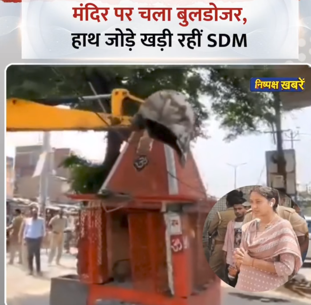 UP : सीतापुर में 25 साल पुराने मंदिर को बुलडोजर से गिराया गया ◆ मंदिर को गिराने के समय SDM हाथ जोड़े खड़ीं नजर आईं