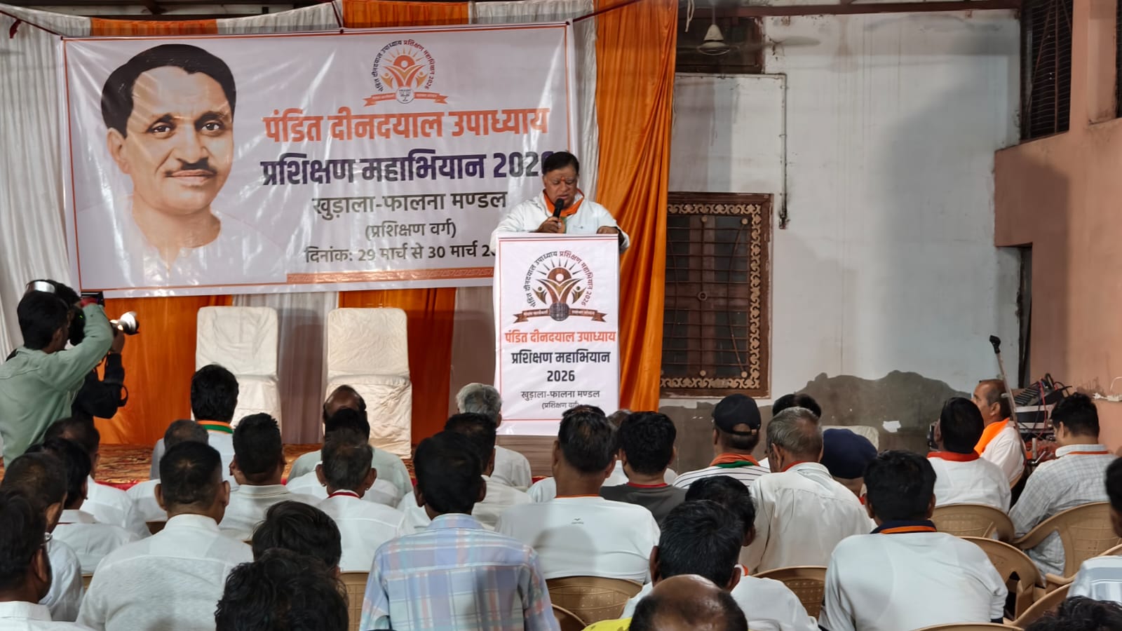 फालना, 30 मार्च 2026: राजस्थान भारतीय जनता पार्टी के प्रदेश अध्यक्ष श्री मदन जी राठौड़, बाली विधायक एवं पूर्व ऊर्जामंत्री ठा. श्री पुष्पेंद्र सिंह राणावत, पाली जिला अध्यक्ष श्री सुनील भंडारी, जिला महामंत्री श्री भरत त्रिवेदी तथा बाली विधानसभा संयोजक श्री प्रताप सिंह भाटी के निर्देशानुसार "पंडित दीनदयाल उपाध्याय प्रशिक्षण महाभियान 2026" के तहत भाजपा मंडल खुड़ाला फालना द्वारा आयोजित एक दिवसीय 24 घंटे के आवासीय प्रशिक्षण वर्ग 29-30 मार्च को वैष्णव छात्रावास, बाली रोड में सफलतापूर्वक संपन्न हुआ।