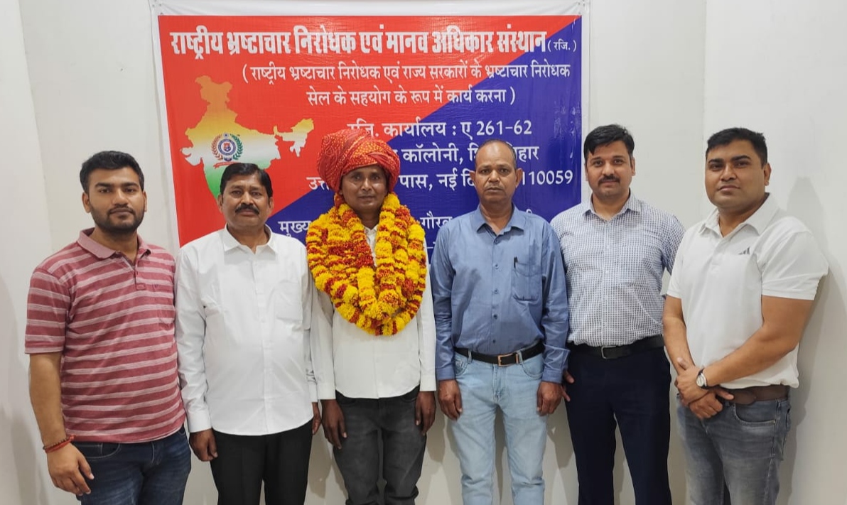 आगरा रोड, जयपुर l दिनांक 30 मार्च 2026 को राष्ट्रीय भ्रष्टाचार निरोधक एवं मानव अधिकार संस्था के राम अवतार लकवाल (ग्राम केशोपुरा, तहसील बस्सी) का संस्था के पदाधिकारीयों द्वारा स्वागत व सम्मान किया एवं हार्दिक बधाई व शुभकामनाएं दी गई l इस दौरान राष्ट्रीय सचिव अनिल निमेष, राष्ट्रीय प्रवक्ता देवी लाल बैरवा, राष्ट्रीय उपाध्यक्ष राम अवतार लकवाल, राष्ट्रीय प्रमुख ताराचंद बैरवा, शेखर सिंह शेखावत एवं हंसराज कुमावत आदि मौजूद रहे l