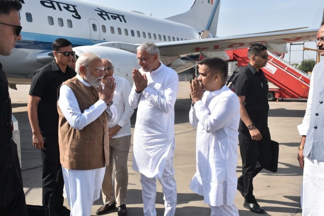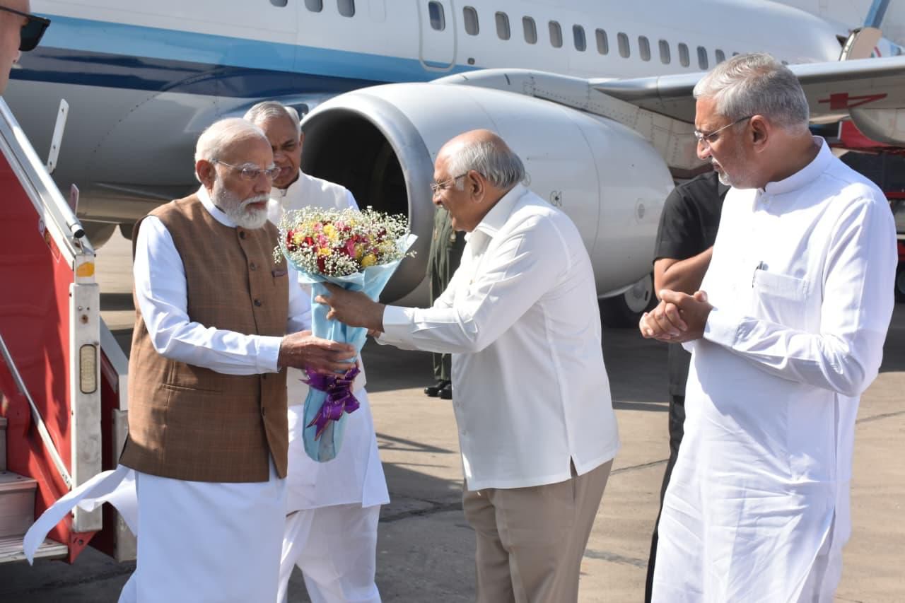 ગુજરાતના આંગણે પધારેલા દેશના યશસ્વી પ્રધાનમંત્રી શ્રી નરેન્દ્ર મોદીજીનું અમદાવાદ એરપોર્ટ પર માનનીય રાજ્યપાલ શ્રી આચાર્ય દેવવ્રતજી, માનનીય મુખ્યમંત્રી શ્રી ભૂપેન્દ્રભાઈ પટેલ, પ્રદેશ અધ્યક્ષ શ્રી જગદીશભાઈ વિશ્વકર્મા અને નાયબ મુખ્યમંત્રી શ્રી હર્ષભાઈ સંઘવી દ્વારા ઉષ્માભર્યું સ્વાગત કરવામાં આવ્યું.