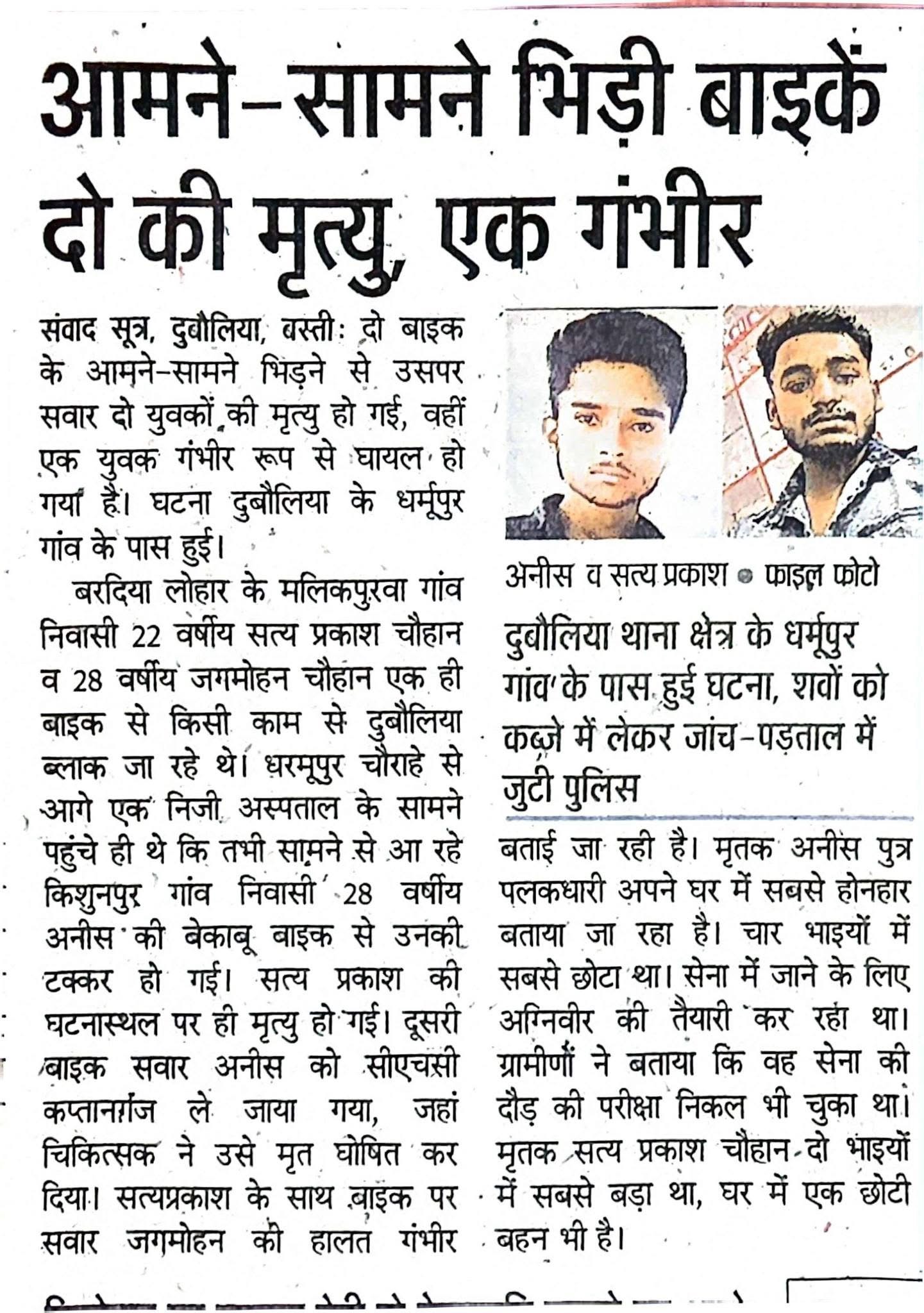 में आमने सामने बाइक की भिड़ंत दो के मौत एक गंभीर रूप से घायल