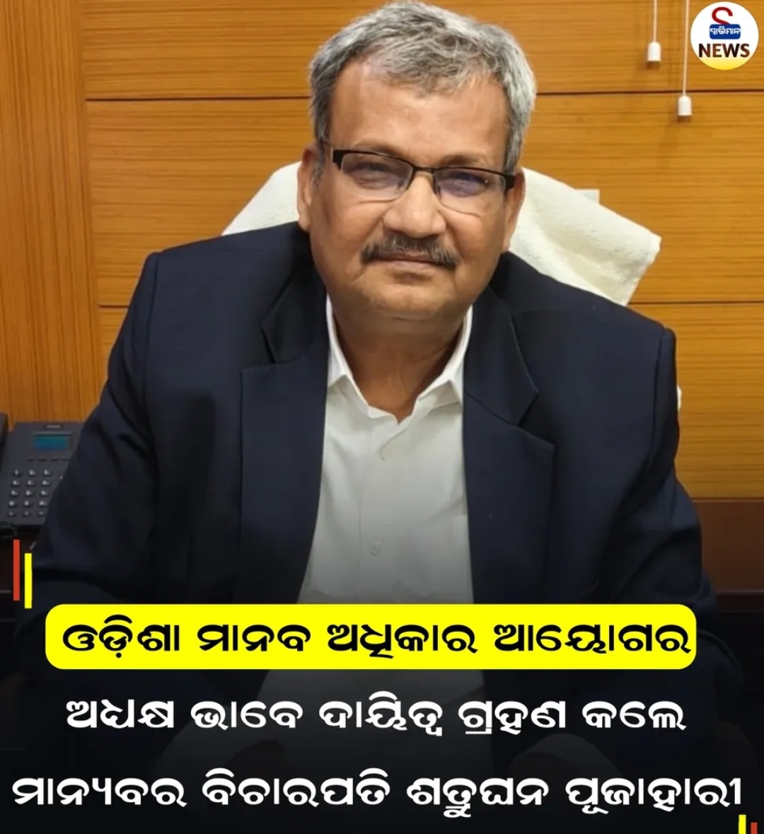 ଓଡ଼ିଶା ମାନବ ଅଧିକାର ଅଧ୍ୟକ୍ଷ ଭାବେ ଯୋଗ ଦେଲେ ପୂର୍ବତନ ବୀଚାରପତି ଶତ୍ରୁଘ୍ନ ପୂଜାହାରୀ ।