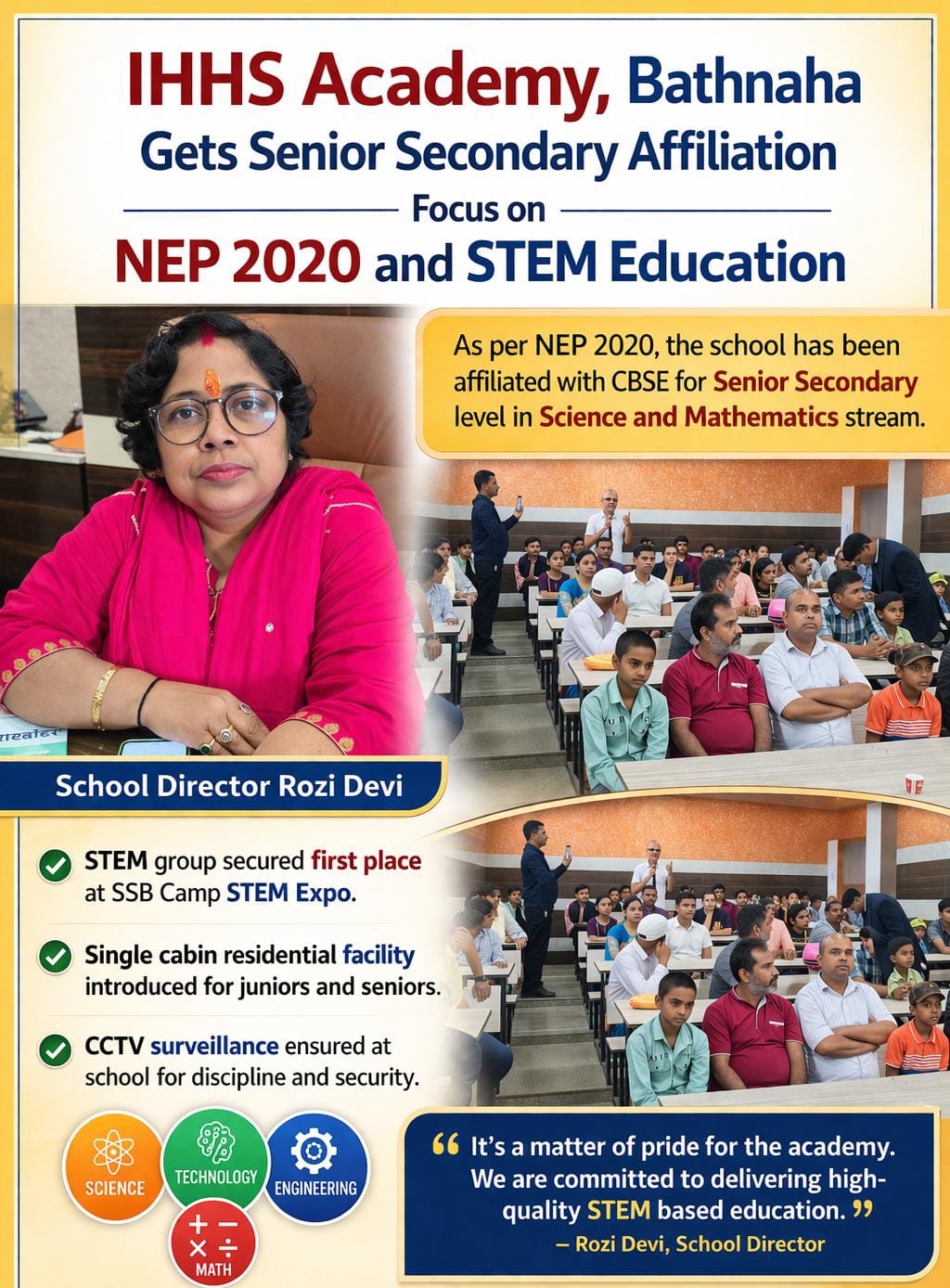 आईएचएचएस एकेडमी, बथनाहा को सीनियर सेकेंडरी संबद्धता ▪️ एनईपी 2020 और STEM शिक्षा पर विशेष जोर