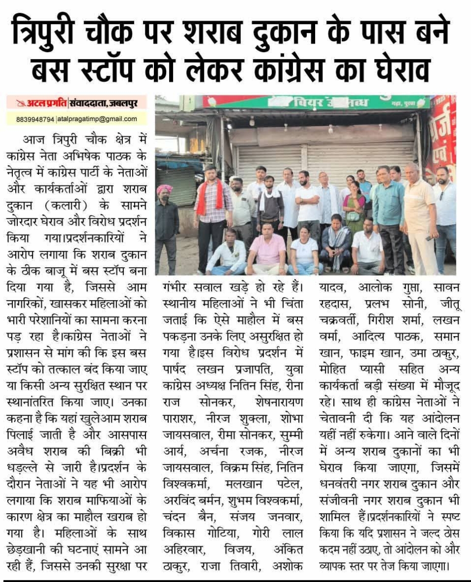 त्रिपुरी चौक पर शराब की दुकान में कांग्रेस कार्यकर्ता ने की कार्यवाही