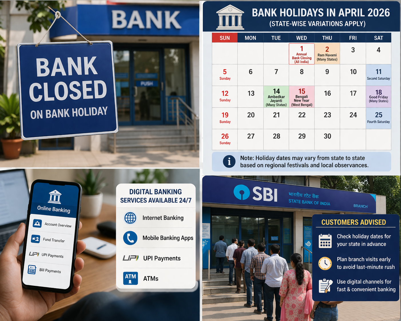 Banks to Remain Closed on Multiple Days in April 2026; Customers Advised to Plan Ahead