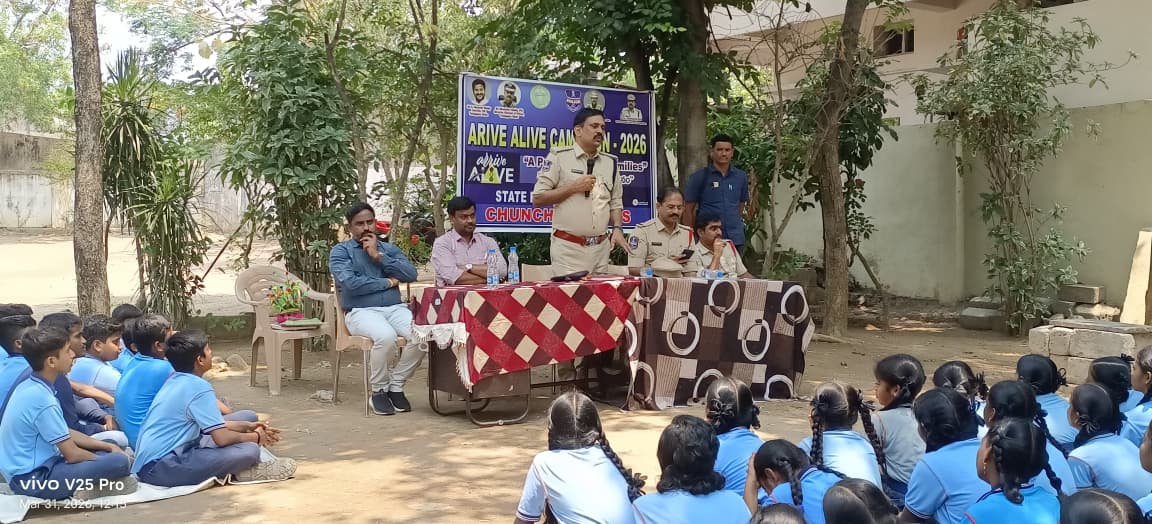 చుంచు పల్లి మండలం రామ్ నగర్ లోని ఎస్ ఆర్ డీజీ పాఠశాలలో ఏర్పాటు చేసినటువంటి కార్యక్రమంలో ముఖ్యఅతిథిగా విచ్చేసిన డి.ఎస్.పి ఆదినారాయణ మాట్లాడుతూ ప్రతి విద్యార్థి సమాజంపై బాధ్యతాయుతమైన పౌరుడుగా ఎదగాలని ఆకాంక్షించారు. నేటి సమాజంలో పెరిగిపోతున్న అవినీతి, డ్రగ్స్ తదితర అంశాలపై విద్యార్థులకు అవగాహన కలిగించే కార్యక్రమంలో భాగంగా విద్యార్థులకు దిశా నిర్దేశం చేశారు. సమాజ ఎదుగుదలలో ప్రతి పౌరుడు బాధ్యతాయుతంగా నడుచుకోవాలని ట్రాఫిక్ రూల్స్ తప్పనిసరిగా పాటించాలని, మన చుట్టుపక్కల జరుగుతున్న అవినీతిపై జాగరుకులై ఉండాలని, మీరూ ఎంతోమందికి మార్గదర్శకూలుగా ఎదగాలని కోరుకున్నారు.