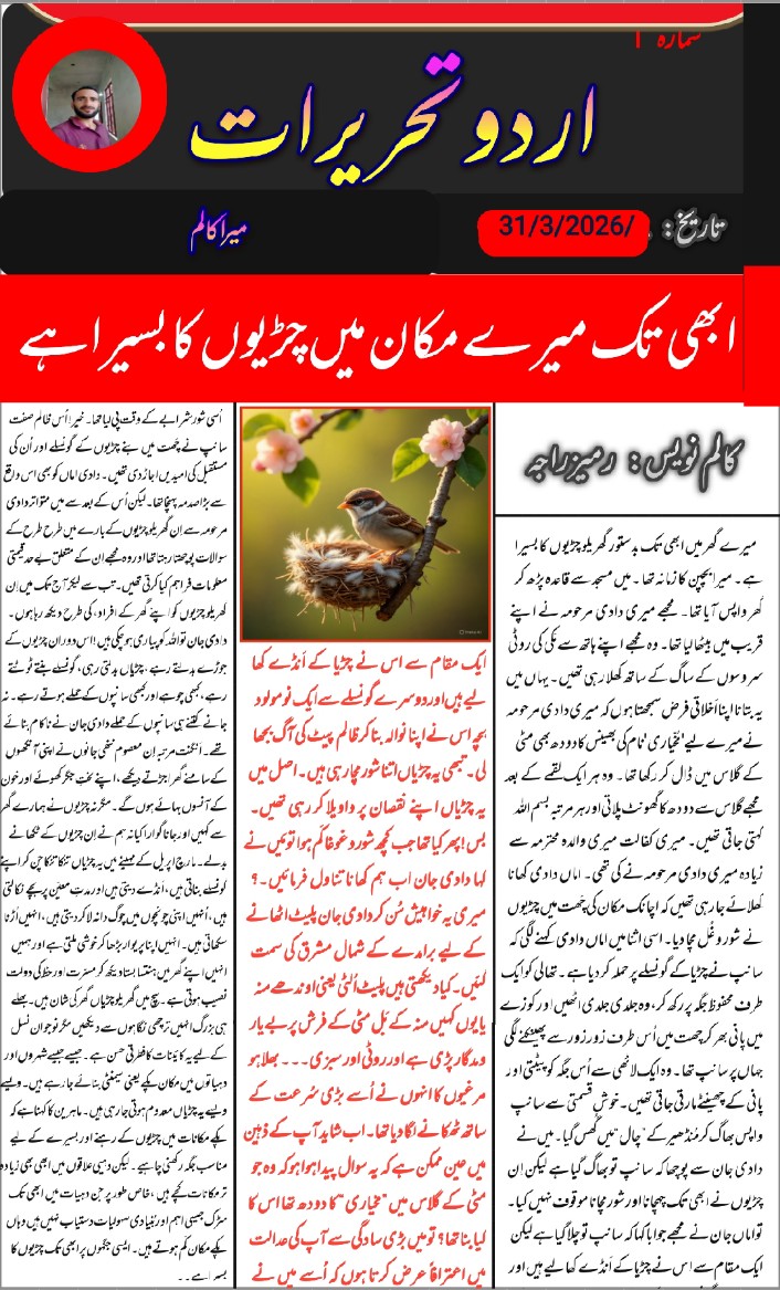 میرے گھر میں ابھی تک چڑیوں کا بسیرا ہے