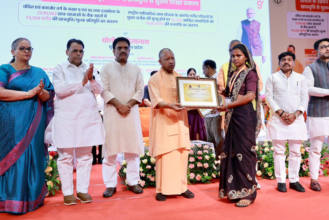 वंचित एवं कमजोर वर्ग के कक्षा 9 एवं 10 तथा दशमोत्तर के 27,99,982 छात्र-छात्राओं के बैंक खातों में ₹3,350 करोड़ की छात्रवृत्ति/शुल्क प्रतिपूर्ति व राष्ट्रीय पारिवारिक लाभ योजना के अंतर्गत 33,334 आश्रित लाभार्थियों को ₹100 करोड़ की धनराशि के अंतरण हेतु लखनऊ में आयोजित कार्यक्रम में आज सम्मिलित हुआ।
