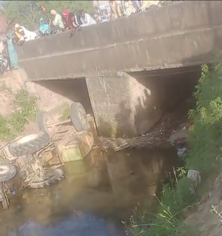 तेज रफ्तार अनियंत्रित ट्रैक्टर नहर में पलटा, चालक की मौत, दो घायल