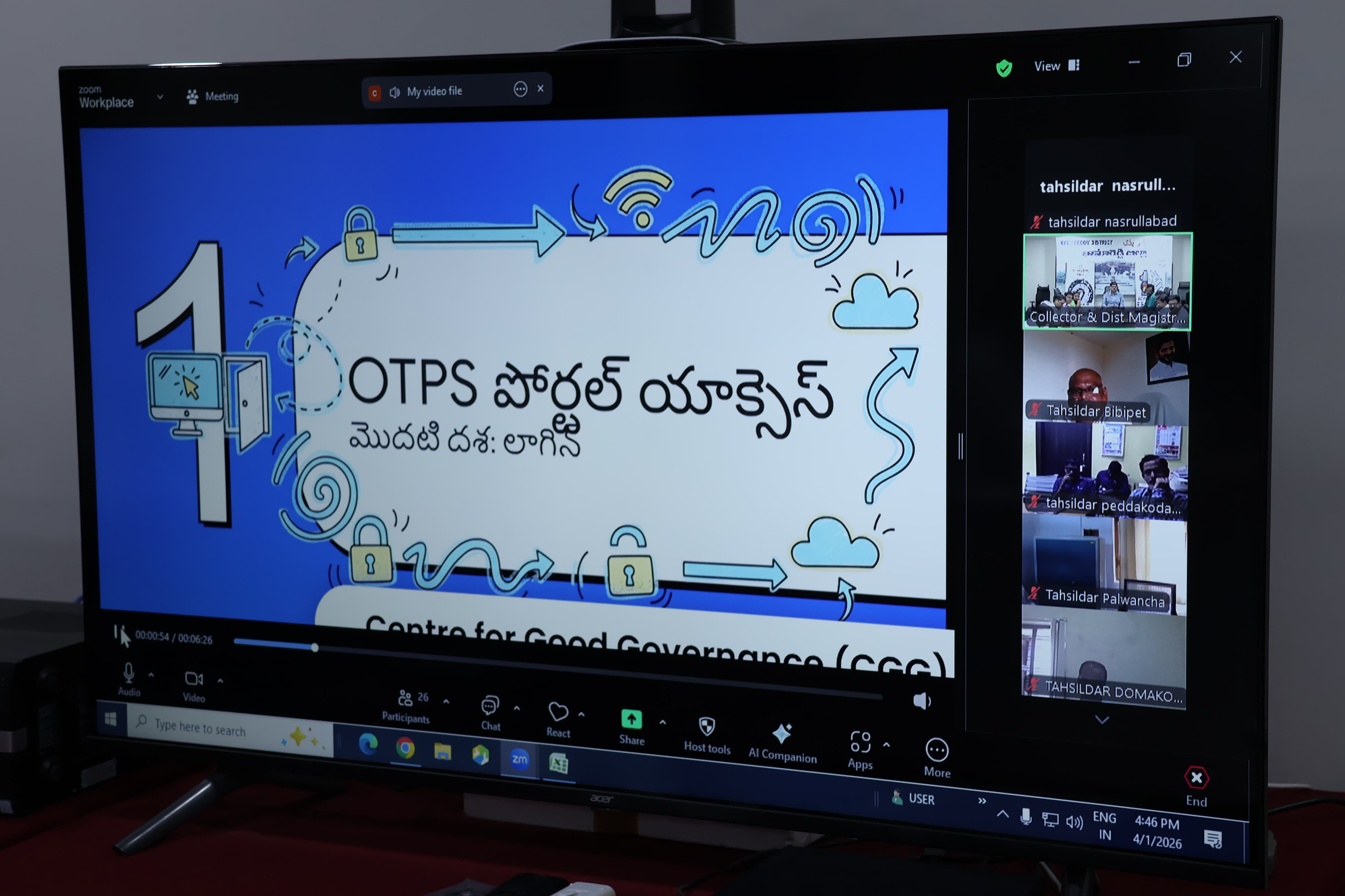 ఆధ్వర్యంలో, “మన ఇసుక, మన వాహనం” ఆన్లైన్ పోర్టల్ ద్వారా స్థానిక అవసరాలకు,c ఇందిరమ్మ ఇల్లు నిర్మాణం కోసం ఇసుక కోసం దరఖాస్తులు స్వీకరించడానికి సంబంధించిన శిక్షణ కార్యక్రమం బుధవారం సాయంత్రం వీడియో కాన్ఫరెన్స్ హాల్ లో నిర్వహించడం జరిగింది... ఈ కార్యక్రమం సెంటర్ ఫర్ గుడ్ గవర్నెన్స్ సహాయంతో, తాసిల్దారులు, ఆర్ డి ఓలు, సబ్ కలెక్టర్‌లు, ఏడీఎం జీ (ADM G), ఇతర ఇంజనీరింగ్ విభాగాల అధికారులు పాల్గొన్నారు.