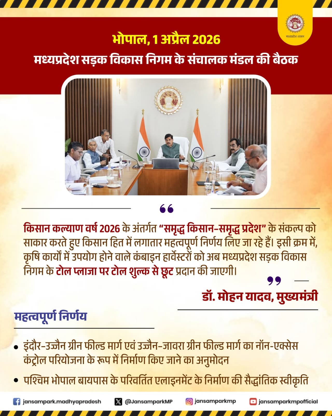 मुख्यमंत्री डॉ. मोहन यादव की अध्यक्षता में आयोजित हुई मध्यप्रदेश सड़क विकास निगम के संचालक मंडल की बैठक