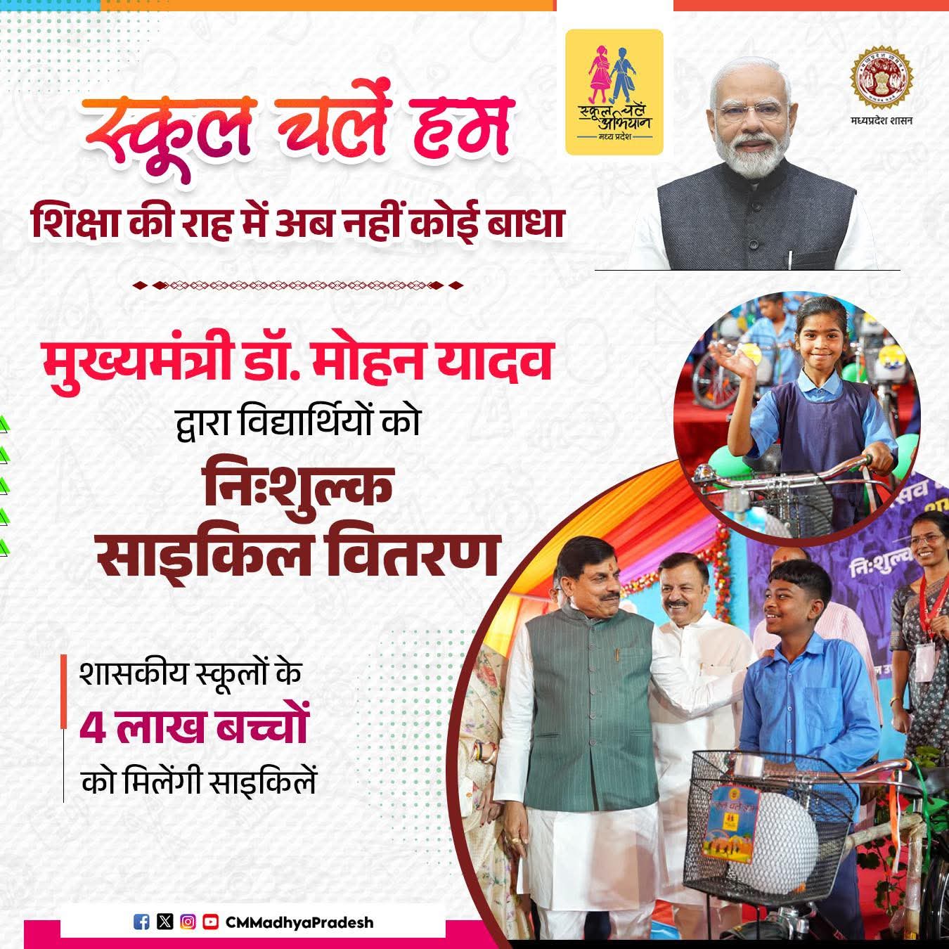 मध्यप्रदेश में शासकीय स्कूलों के 4 लाख बच्चों को मिलेंगी निःशुल्क साइकिलें