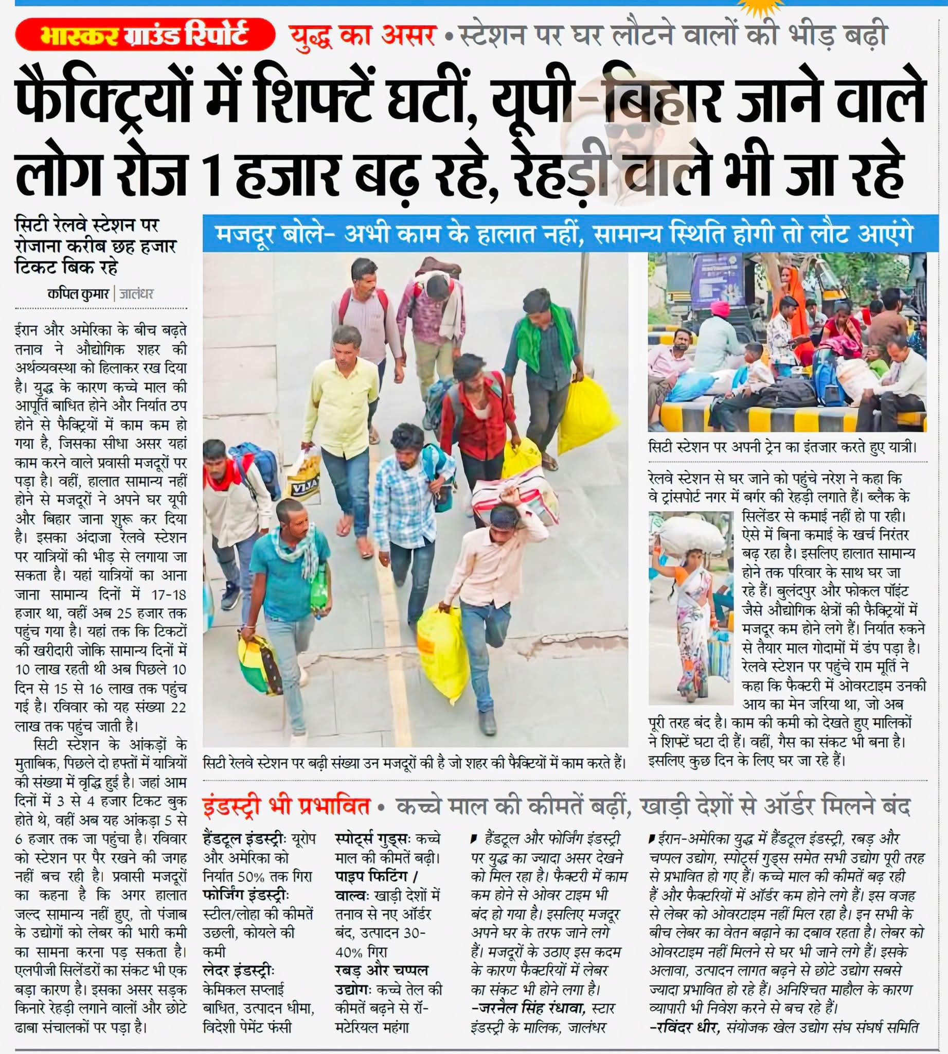 फैक्ट्रियां में शिफ्ट घटी, युपी - बिहार जाने वाले लोग रोज 1 हजार बढ रहें, रेहड़ी वाले भी जा रहें