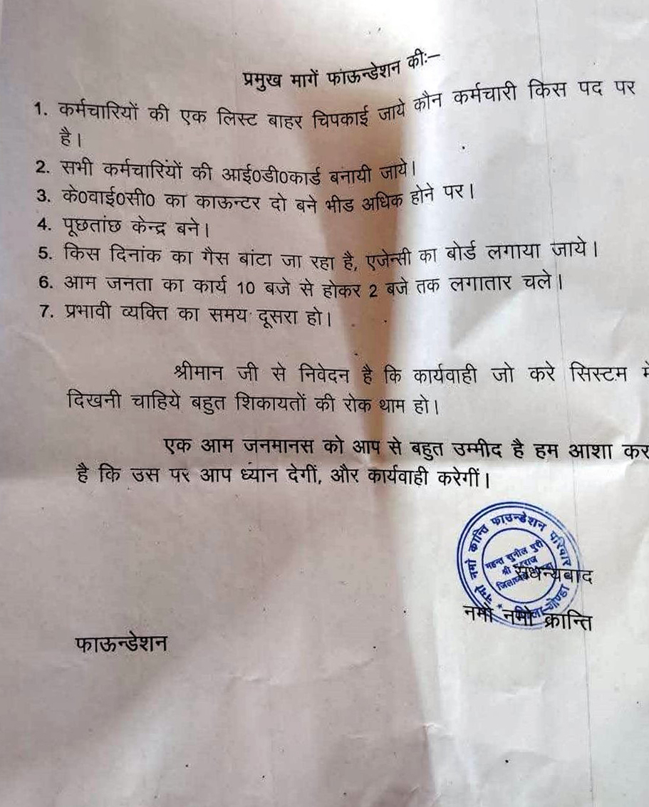 इसके अलावा, आम जनता के लिए कार्य का समय सुबह 10 बजे से दोपहर 2 बजे तक निर्धारित करने और प्रभावशाली व्यक्तियों के लिए अलग समय तय करने की भी मांग की गई है।