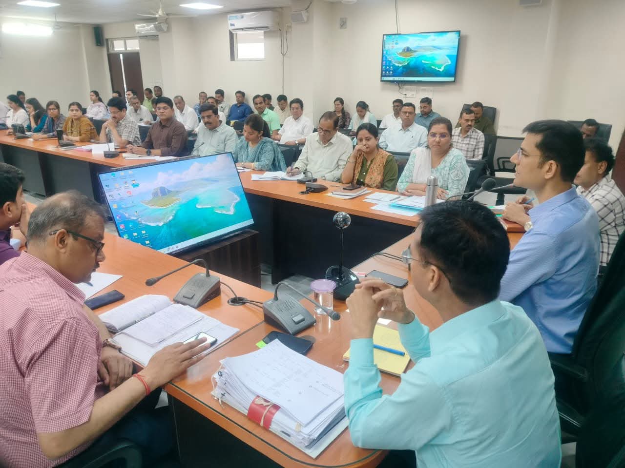 बैठक में मुख्य कार्यपालन अधिकारी जिला पंचायत श्री कमलेश कुमार भार्गव, अपर कलेक्टर श्री अश्विनी कुमार रावत, समस्त एसडीएम, नगर निगम आयुक्त, जिला अधिकारी, जनपद सीईओ, सीएमओ एवं तहसीलदार उपस्थित रहे।