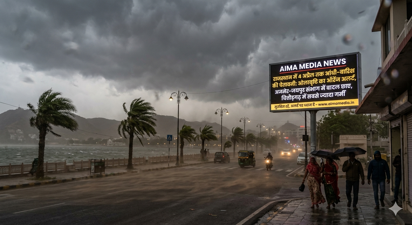 राजस्थान में मौसम का यू-टर्न: 4 अप्रैल तक आंधी-बारिश और ओलावृष्टि का ऑरेंज अलर्ट, अजमेर सहित कई जिलों में बदलेगा मिजाज